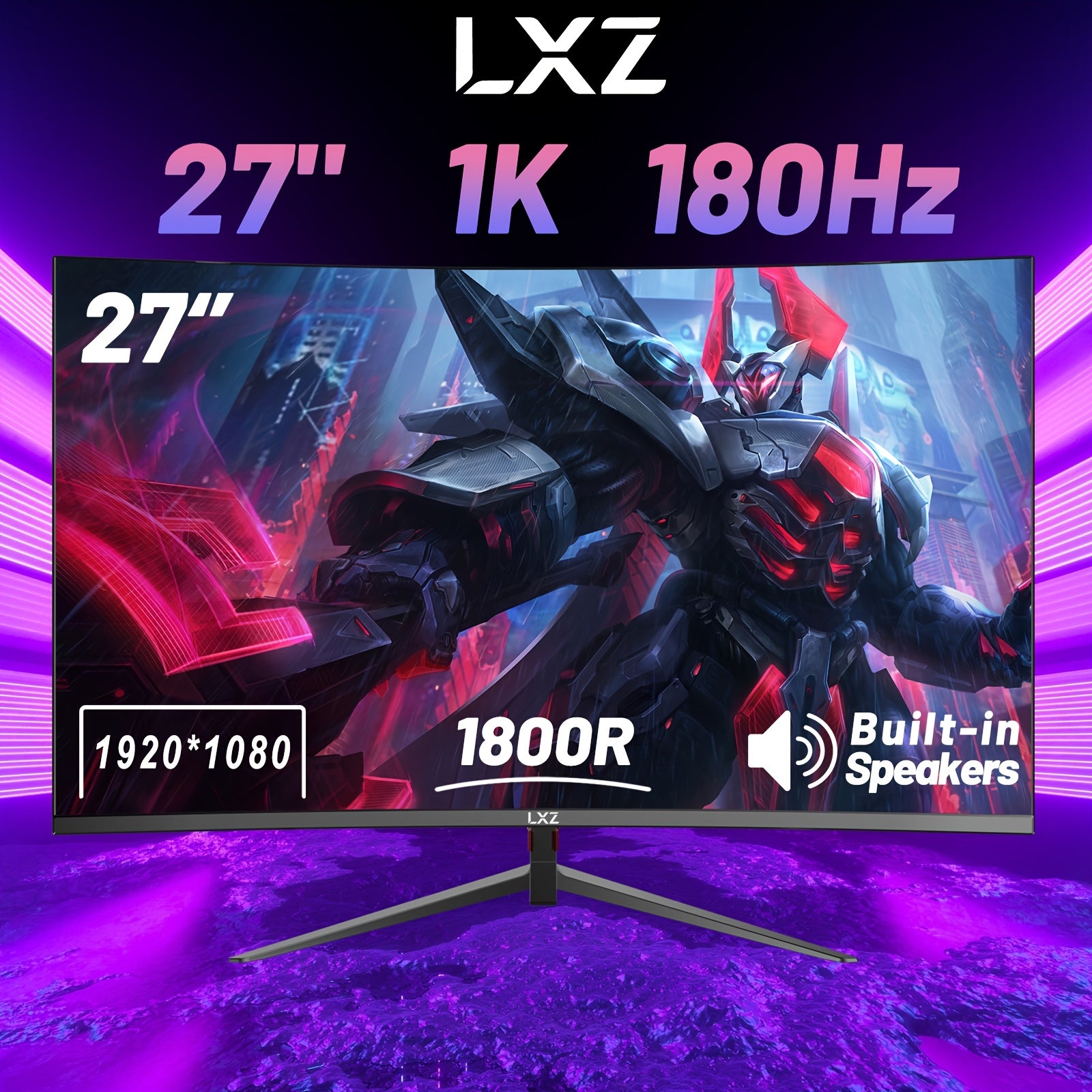Monitor da gioco curvo LXZ da 27 pollici, monitor da 180 Hz FHD 1080P, altoparlante integrato, display per computer senza cornice 1800R con tecnologia FreeSync, supporto a parete, regalo per ragazzi e ragazze, regalo di Natale, regalo di compleanno