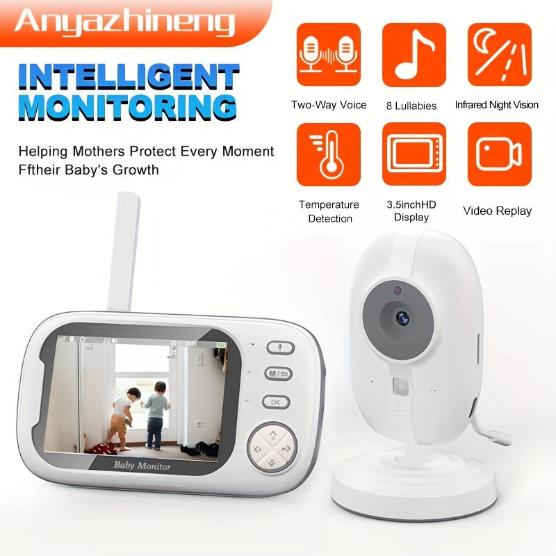 Monitor intelligente per bambini ANYAZHINENG con voce bidirezionale, 8 ninne nanne, visione notturna a infrarossi - Display HD da 8,89 cm, rilevamento della temperatura, riproduzione video, alimentazione USB, corpo in plastica, ideale per la sicurezza dom