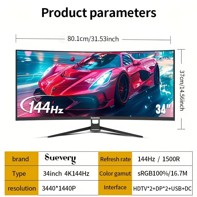 Monitor pz Suevery/LXZ 32 Pollici, Schermo Curvo 2K 165Hz, 1800R 1ms, FreeSync, 100% SRGB, Angolo di Visione Ampio 178°, HDTV2.1, DisplayPort, Compatibile con Supporto a Parete 75*75mm - Nero