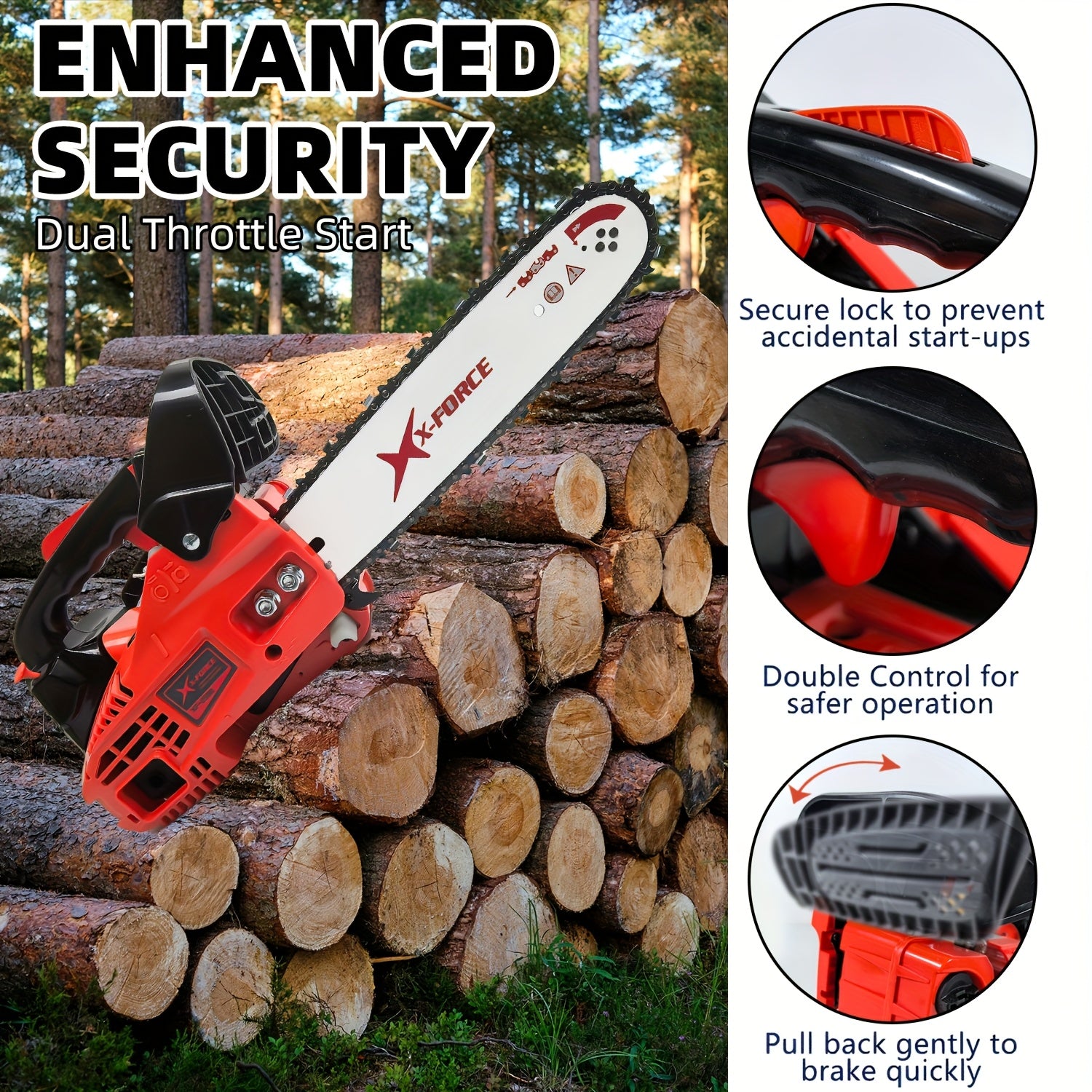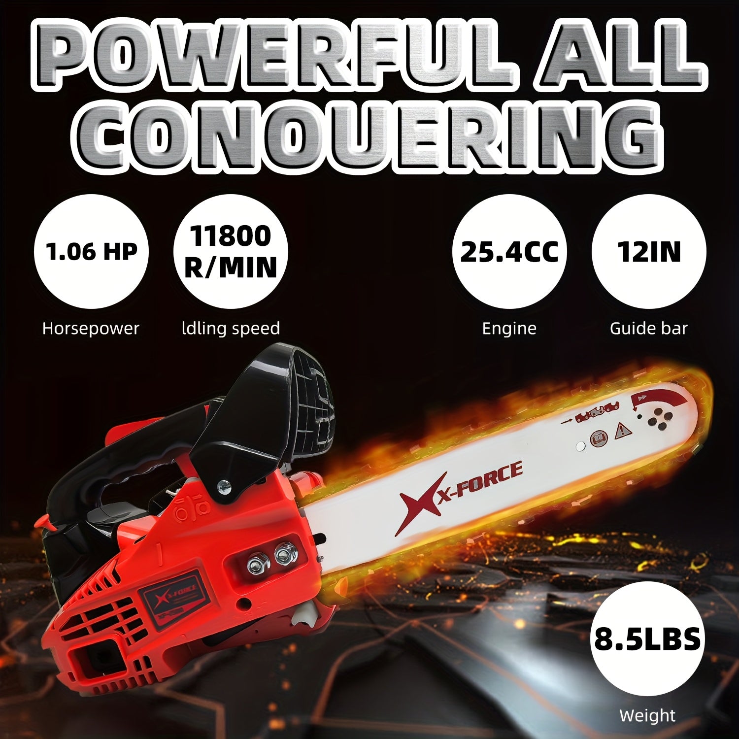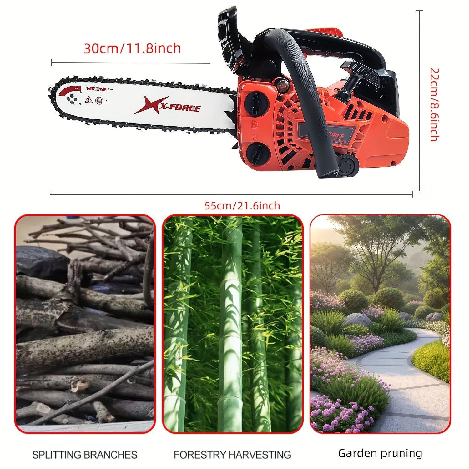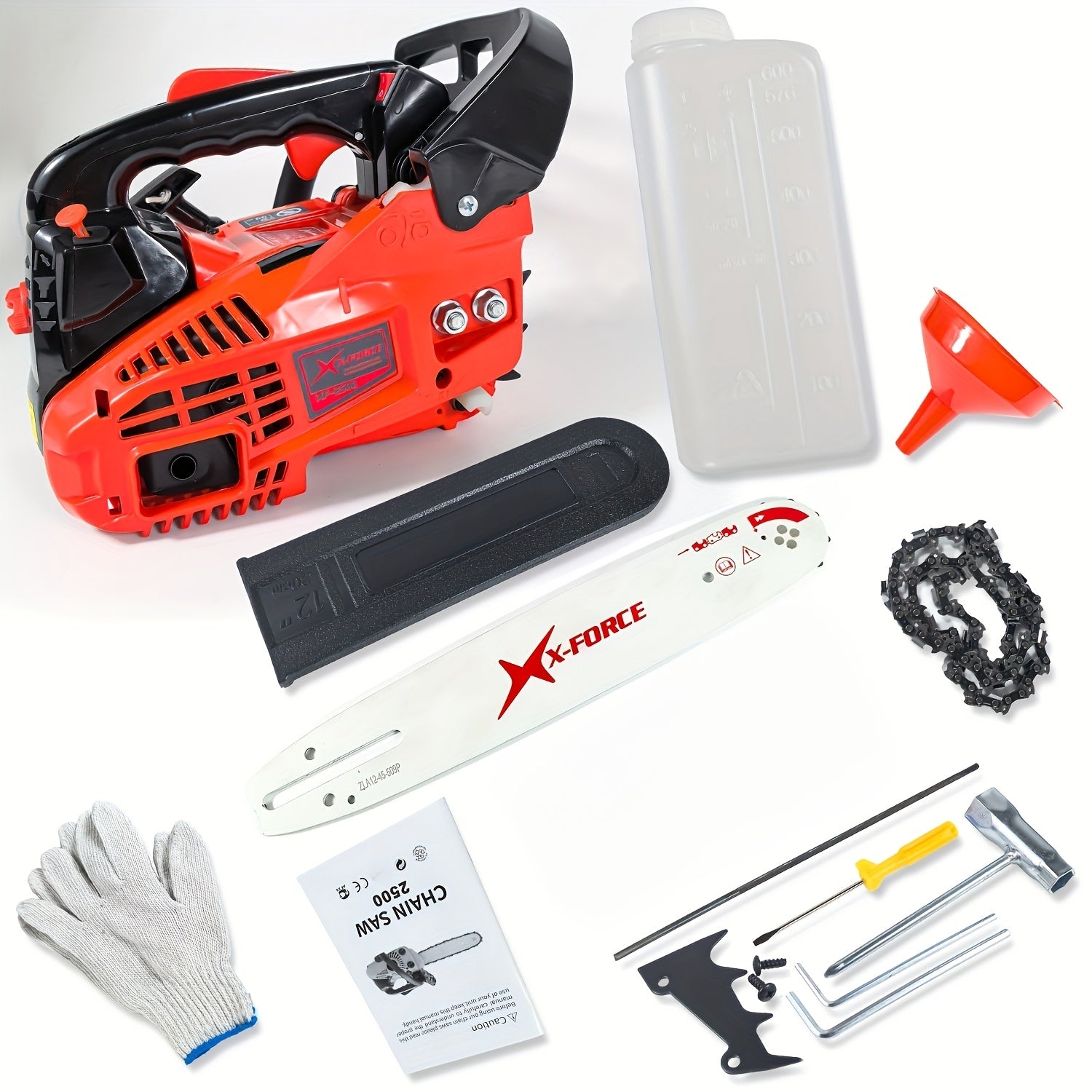 Motosega a catena a 2 tempi da 25.4 cc, potente motosega portatile e motosega da giardino, metallo, alimentata a benzina, non richiede batteria, strumento per la potatura degli alberi all'aperto con kit di installazione