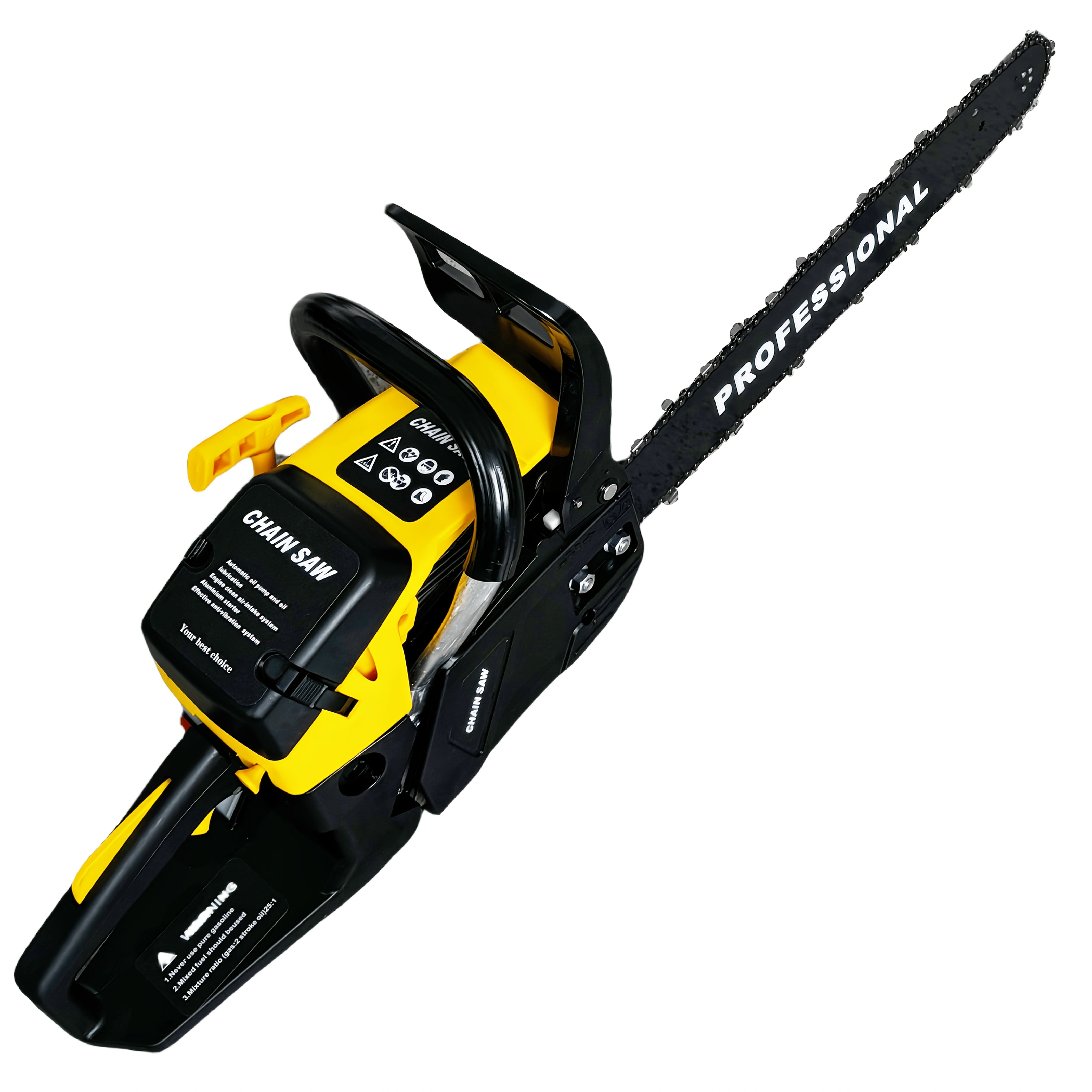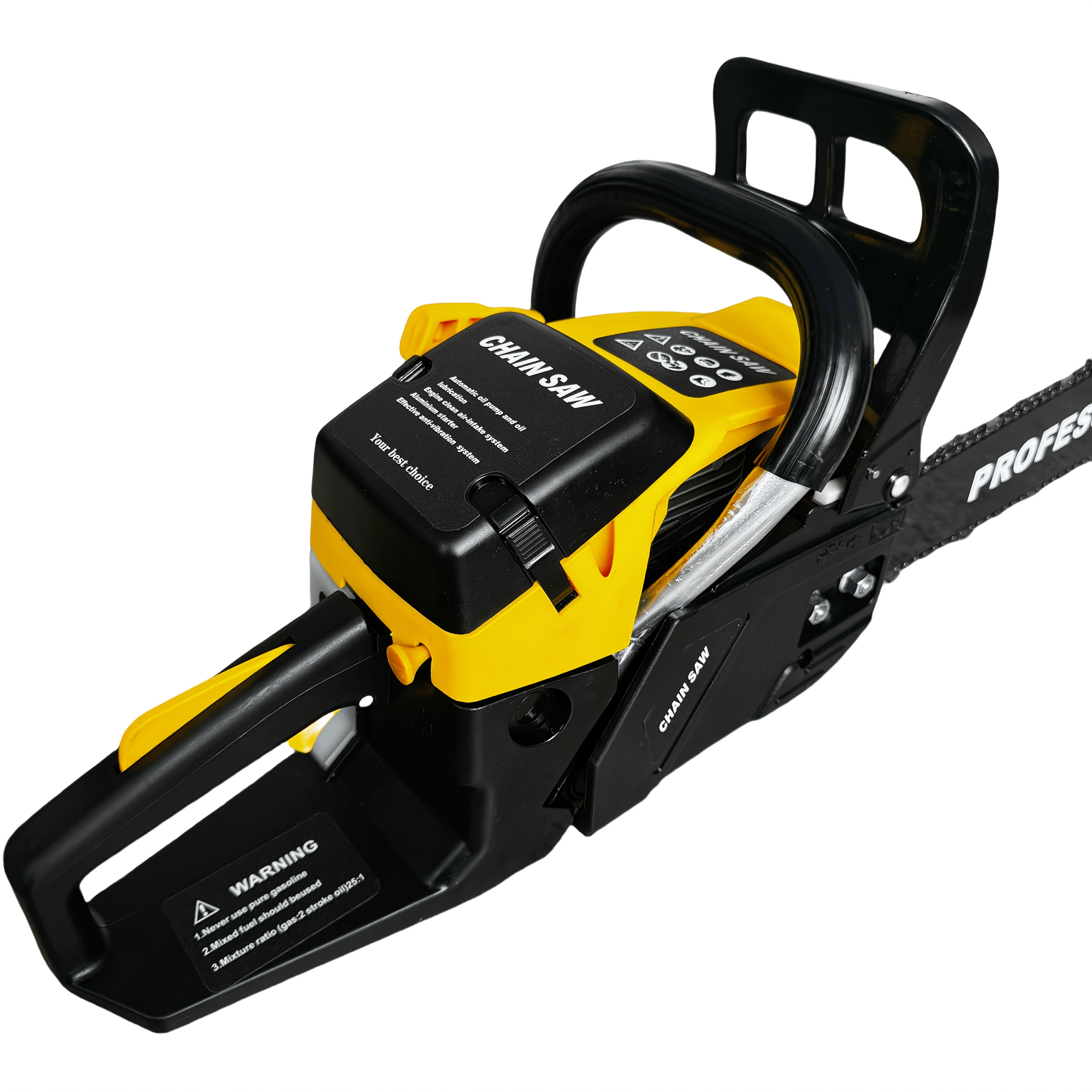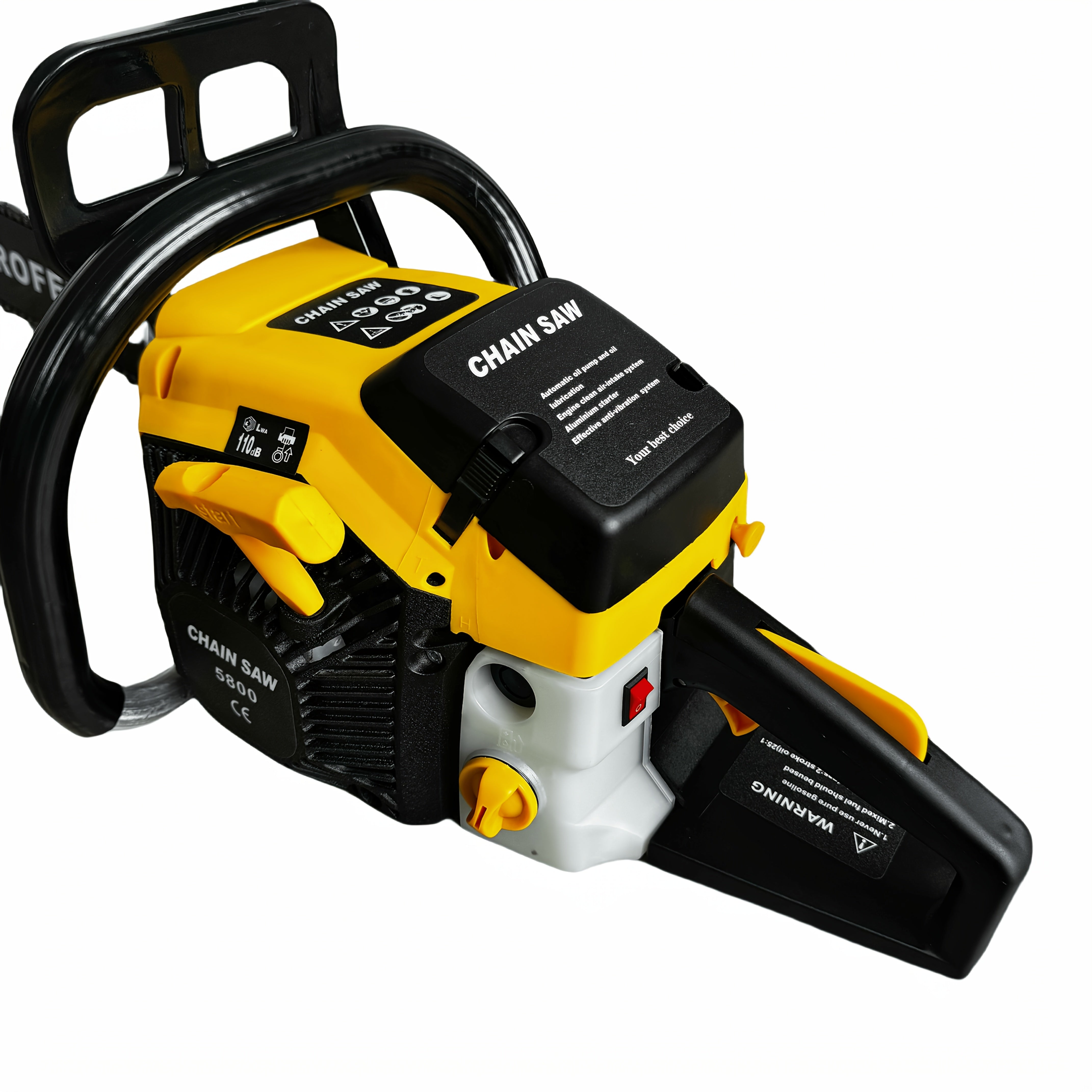 Motosega Professionale da 20 Pollici a Benzina, Potente Motore 5800, Costruzione in Metallo, Design Giallo e Nero, Ideale per il Taglio del Legno, Manutenzione Giardino e Autodifesa
