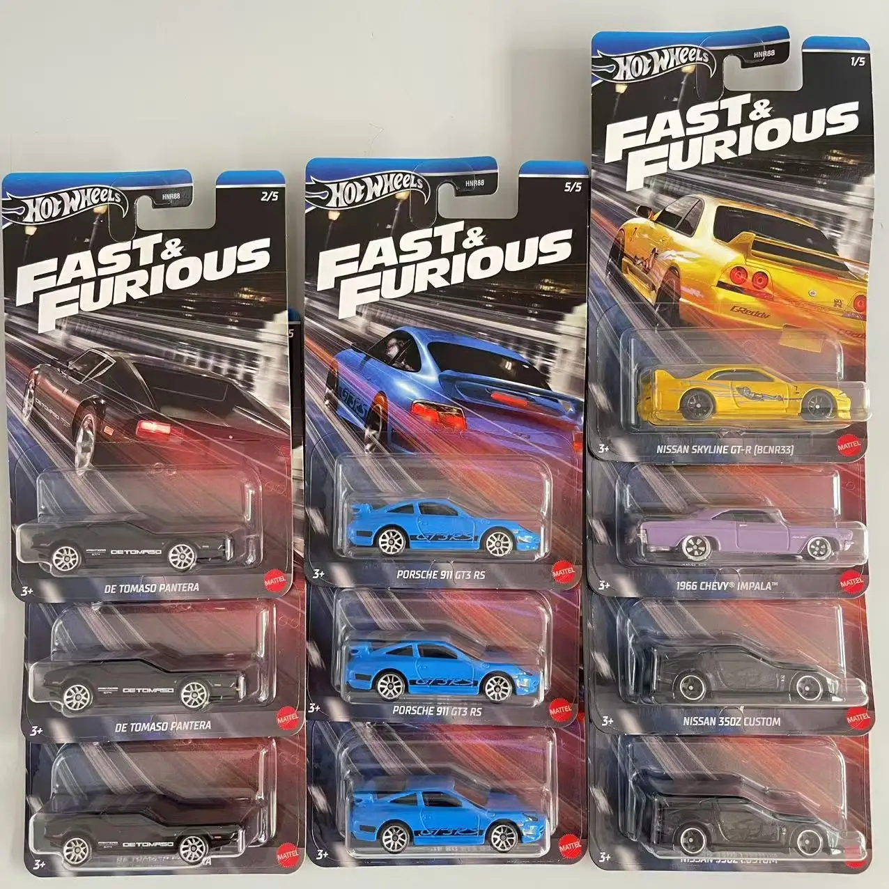 New Hot Wheels Veloce e Furioso a tema non aperto 2024 Diecast Vehicle 1/64 Modello di auto Set completo di 5 pezzi Regali Spedisci ora HRN88
