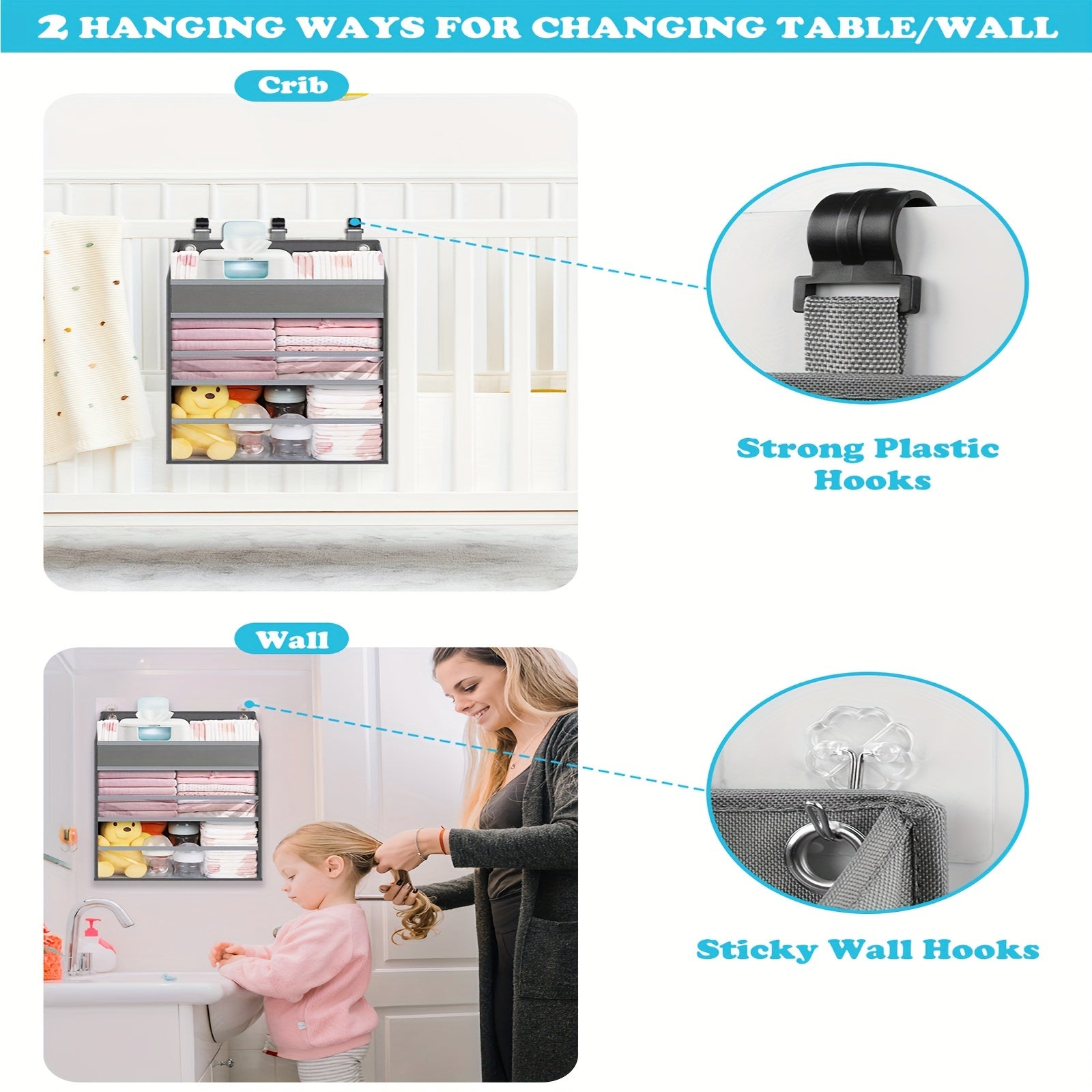 Organizzatore per pannolini sospeso con più tasche, borsa organizer per fasciatoio, regali per Natale, Halloween, Giorno del Ringraziamento