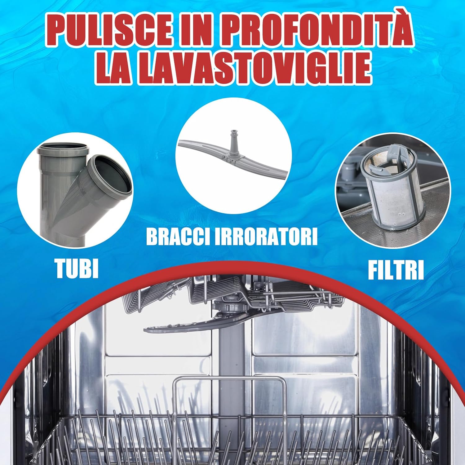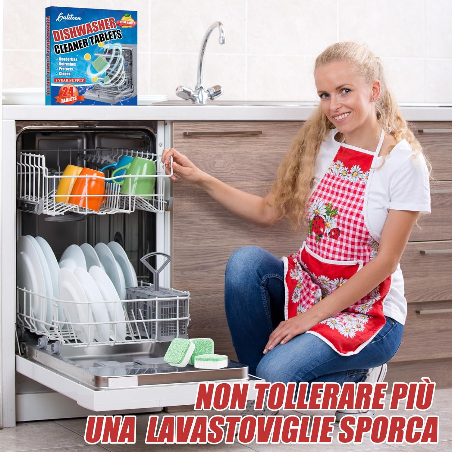 Pastiglie per Pulizia Lavastoviglie, 24 Pack Detergente per la Pulizia Profonda per Lavastoviglie, Rimuove Efficacemente Grasso, Calcare e Odori