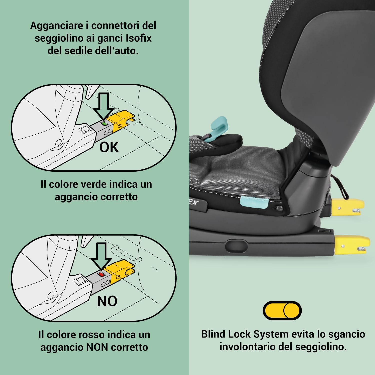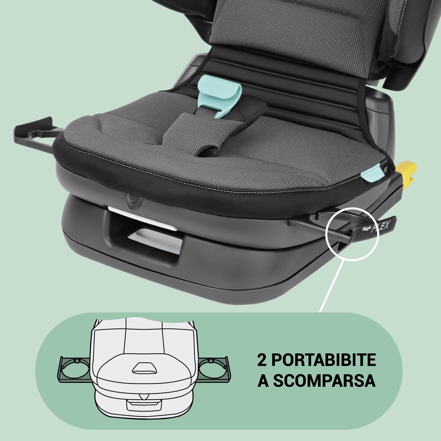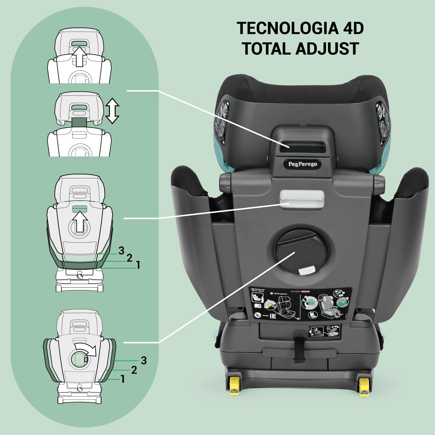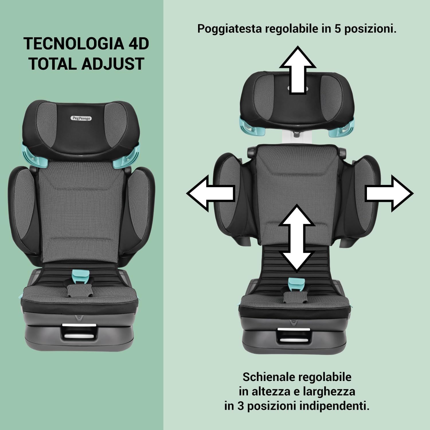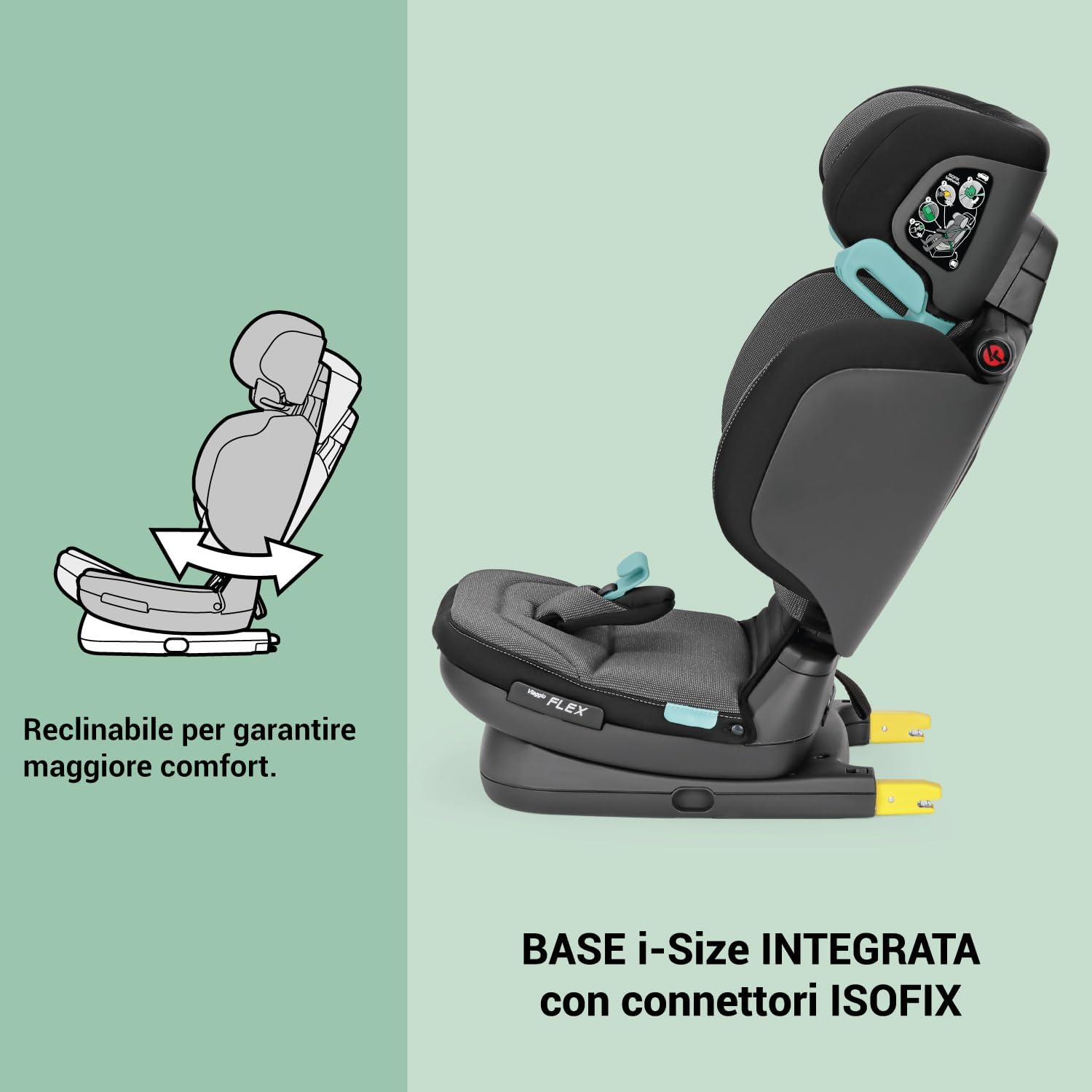 Peg Perego Viaggio Flex Seggiolino Auto ISOFIX con Tecnologia Avanzata, Reclinabile, Pieghevole, Schienale Rinforzato, per Bambini da 100 a 150 cm (3-12 anni), 15-36 kg, Crystal Black