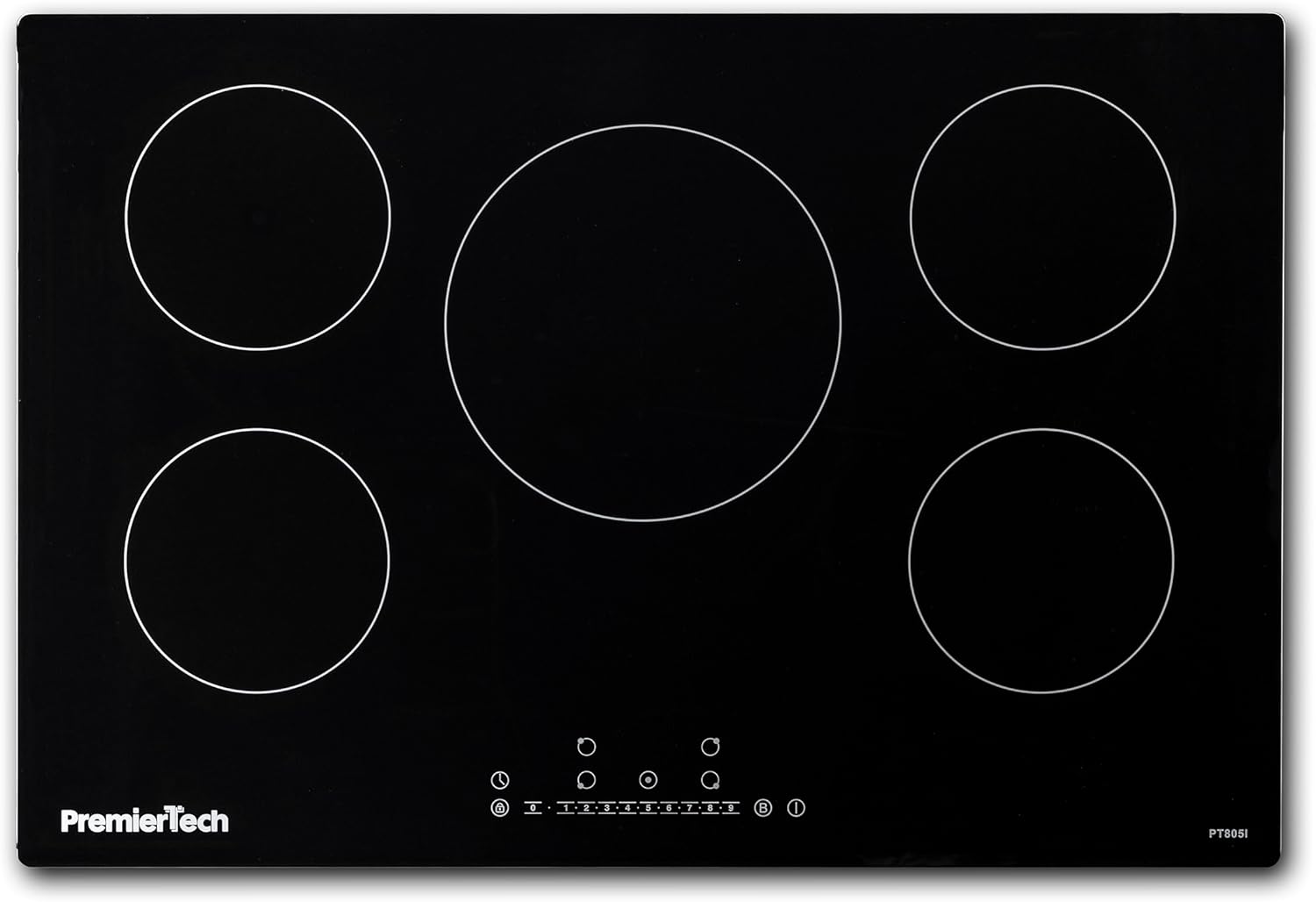PremierTech Piano Cottura a Induzione, 80cm 5 zone (77cm esterne), funzioni Timer, Lock, Boost, Design, PT805I