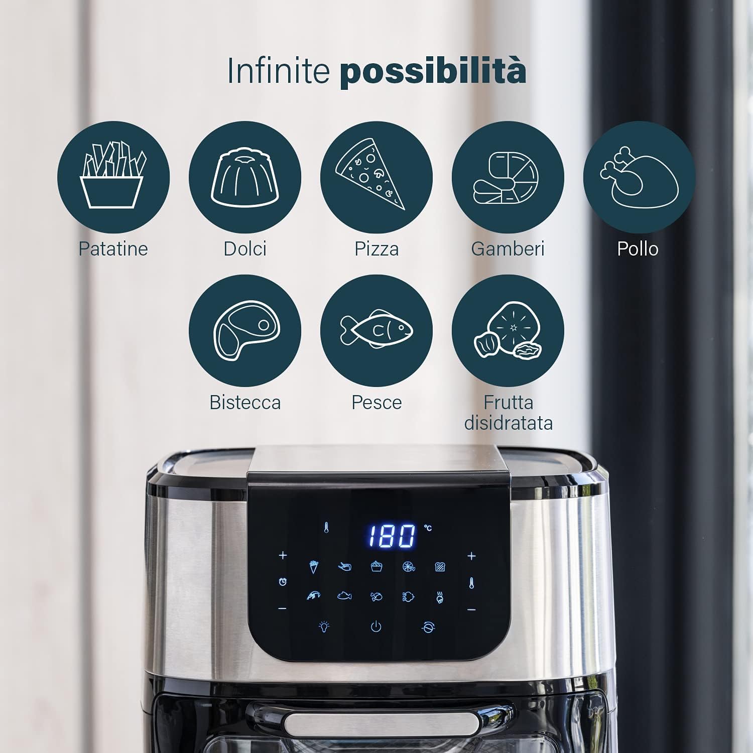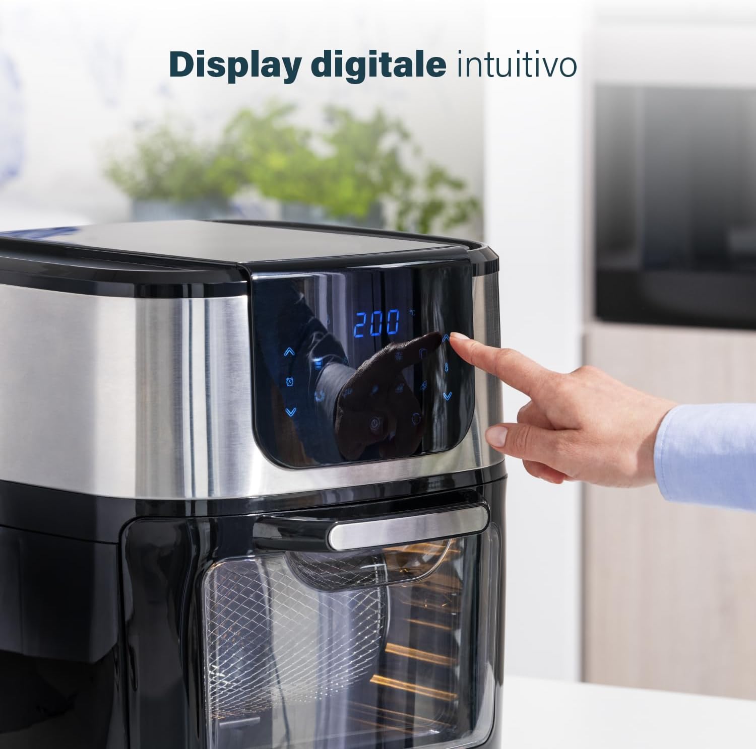 Princess Friggitrice ad Aria Forno Deluxe – 11 L – 1800 W – Schermo tattile digitale – 10 programmi preimpostati – Girapollo e cestello inclusi – Acciaio inossidabile – 182075