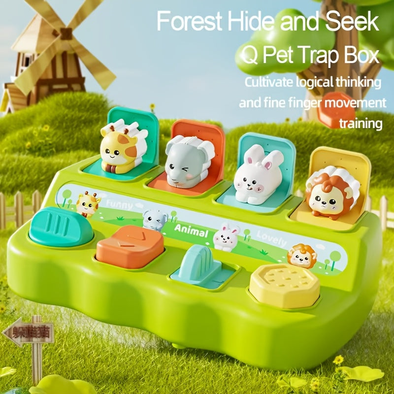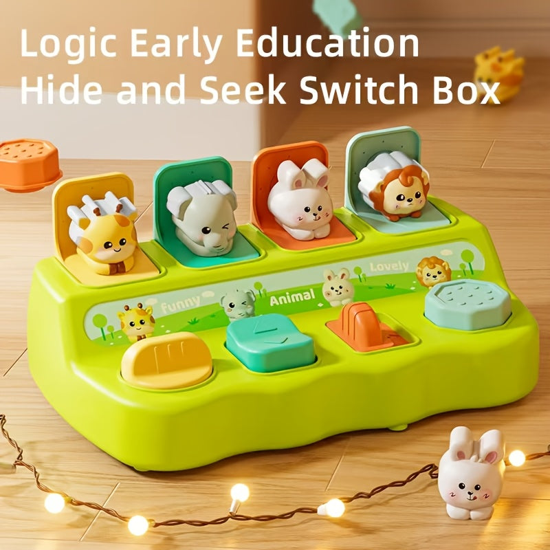 Scatola a pop-up con personaggi dei cartoni animati per bambini di 18-36 mesi - Giocattolo interattivo per l'apprendimento con carte di animali, regalo educativo per compleanni o Natale, materiale ABS, verde