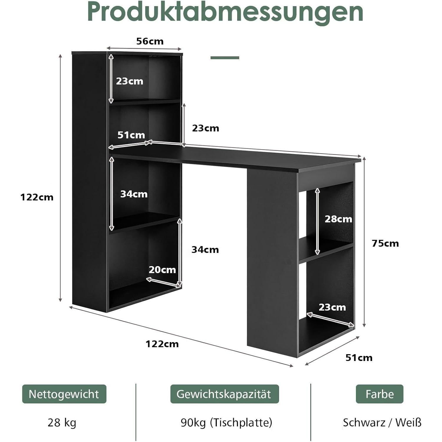 Scrivania da Computer Moderna in Legno Nero con 6 Ripiani, Stazione di Lavoro PC da Pavimento per Ufficio Domestico e Dormitorio, Costruzione in Truciolato, Non Richiede Elettricità
