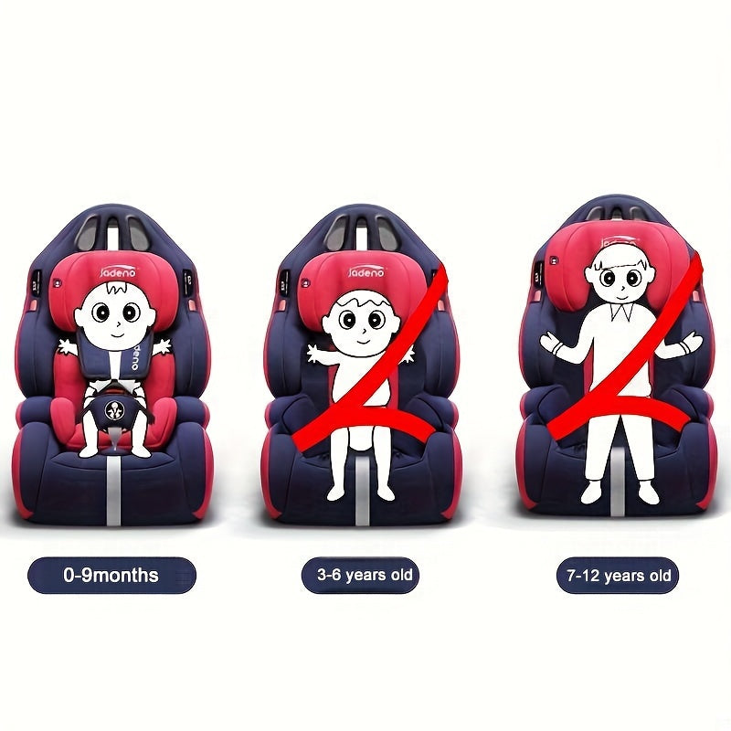Seggiolino Auto da Corsa Jadeno per Giovani - Cintura di Sicurezza Regolabile & Altezza, Nylon Confortevole, Opzioni Rosso/Blu per Età 0-12