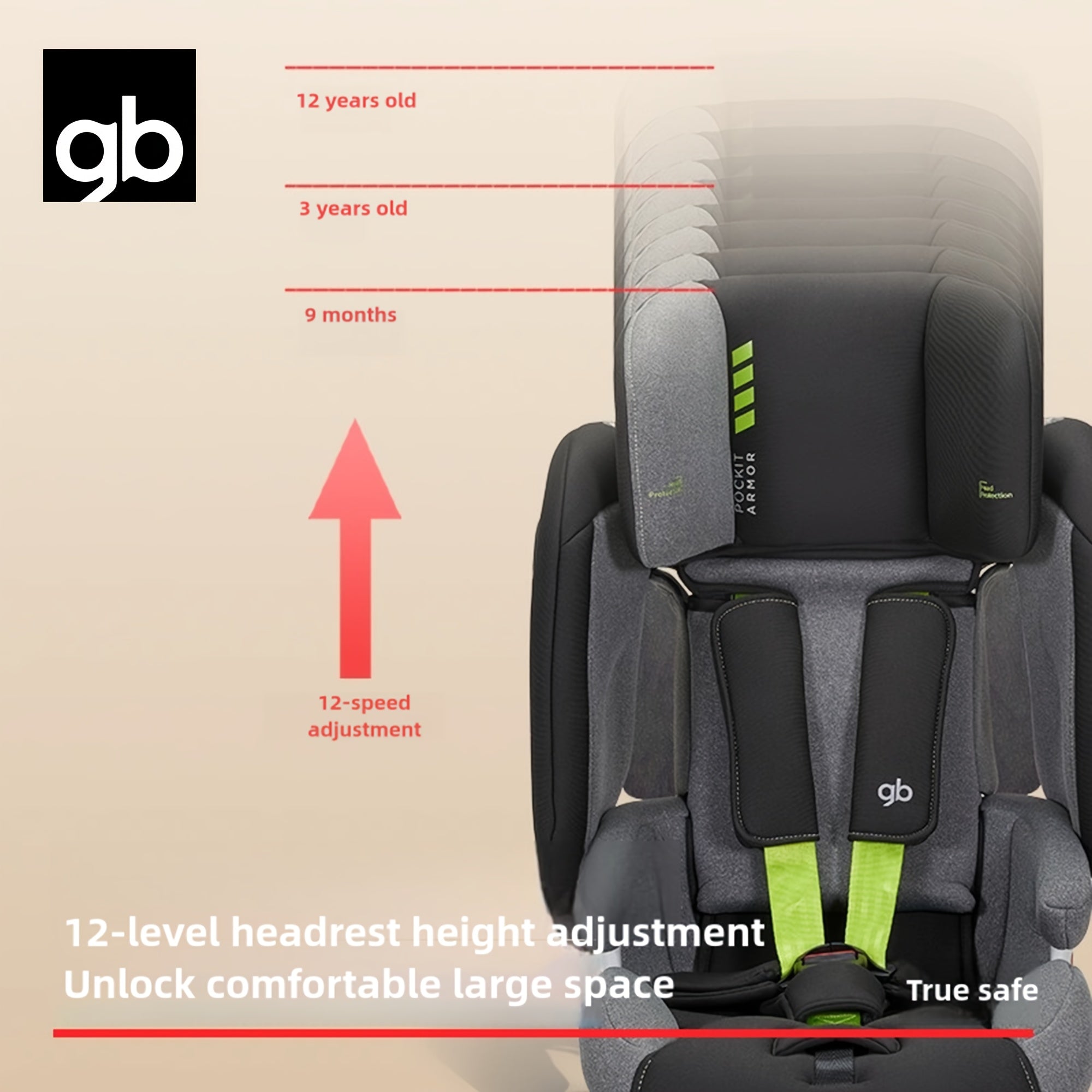 Seggiolino Auto Eg Pockit - Seggiolino Ultra-Compatto per Bambini da 9M a 12A, Altezza Regolabile con Protezione Impatto Laterale LSP, Certificato Sicurezza fino a 80km/h, Cuscino Rimovibile & Cinghie Regolabili, Arancione/Verde, Sedile Viaggio per Bambin