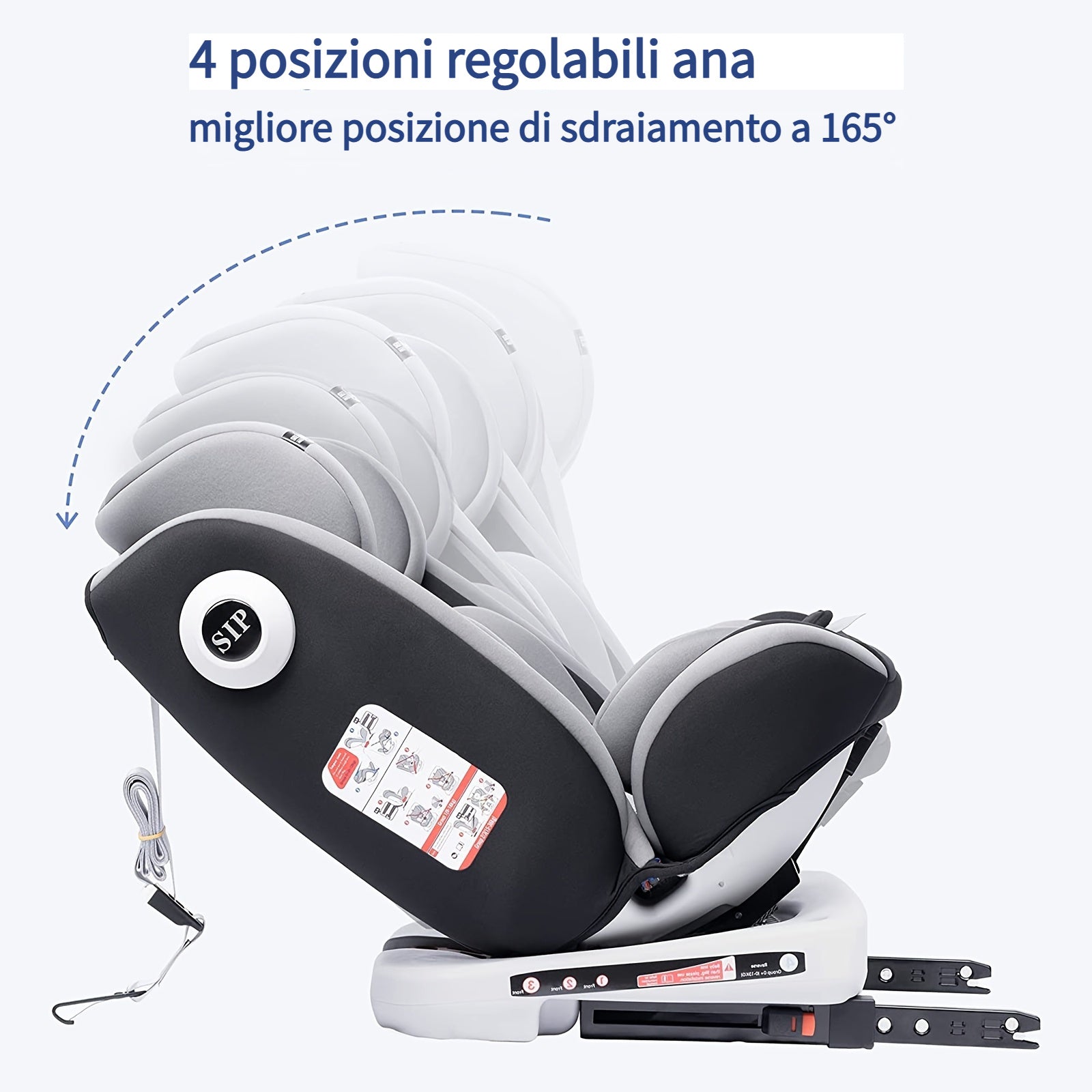 Seggiolino auto girevole con ISOFIX e reclinazione, Gruppo 0+1/2/3 (9-36kg/0-12 anni), imbracatura a 5 punti di sicurezza, nero NSGMXT