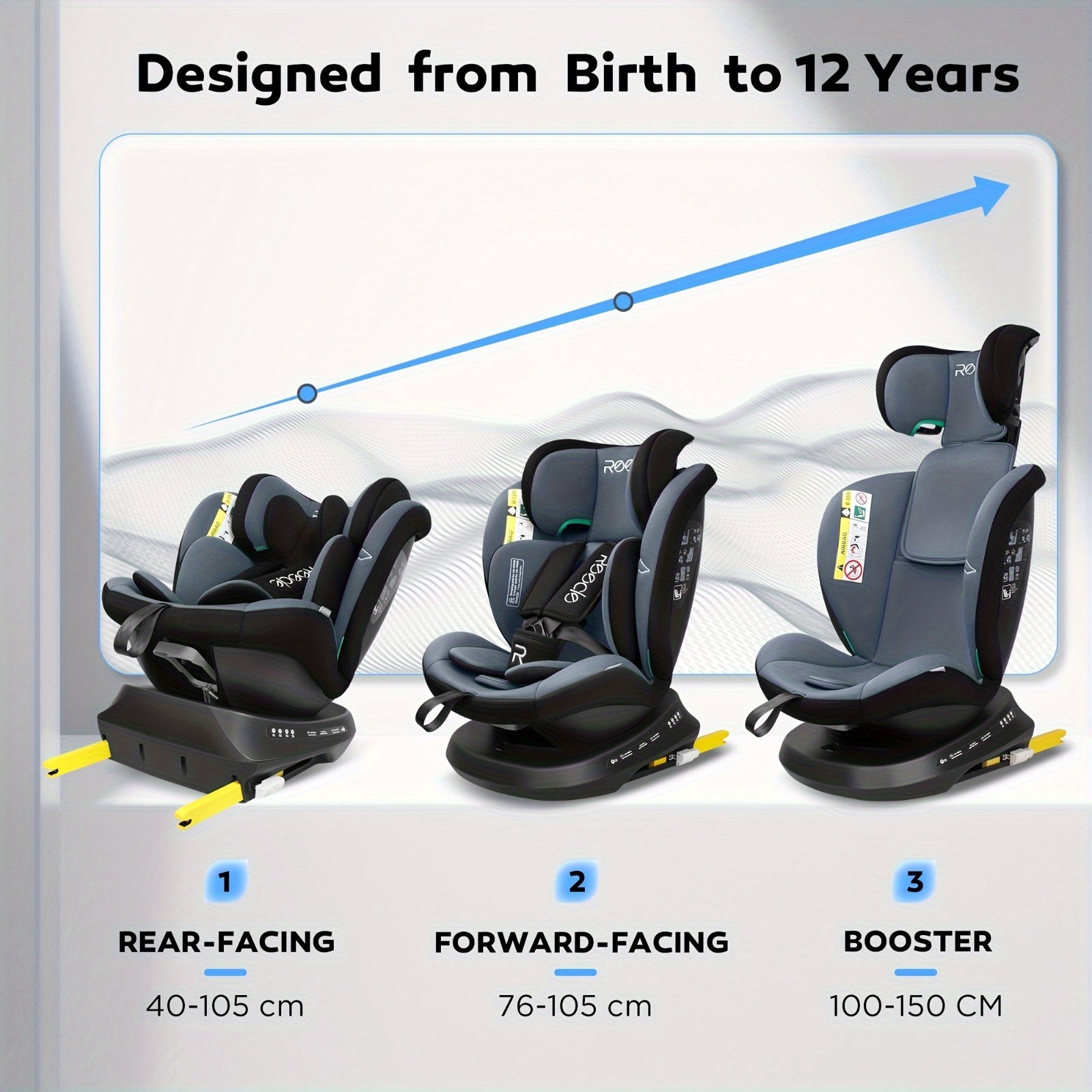 Seggiolino auto I-Size Reecle, ruotabile a 360 gradi, ISOFIX, per bambini da 40 a 150 cm, da alla nascita fino a 12 anni (0-36 kg), conforme alla normativa ECE R129