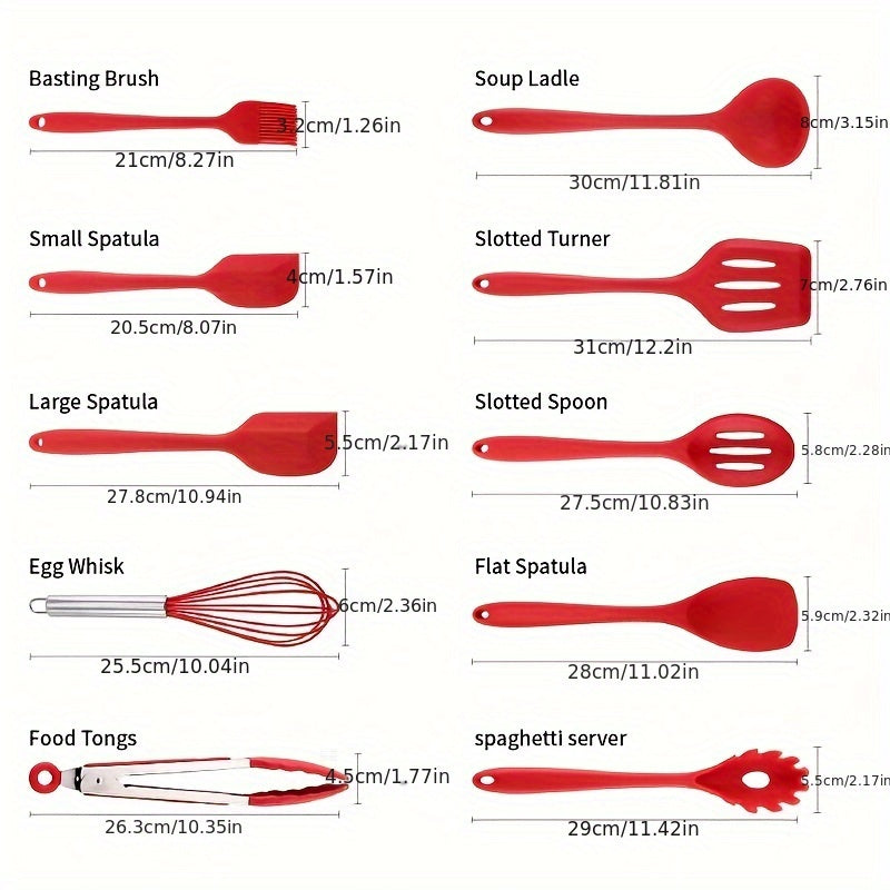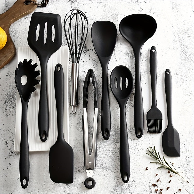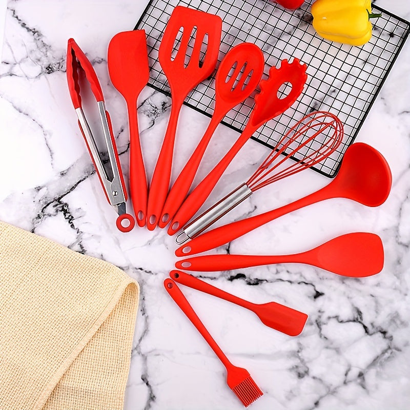 Set di 10 Utensili da Cucina in Silicone - Resistenti al Calore, Strumenti da Cucina Antiaderenti con Cucchiaio, Spatola Forata, Frusta & Pennello per Olio - Kit Essenziale per la Pasticceria per Chef Casalinghi