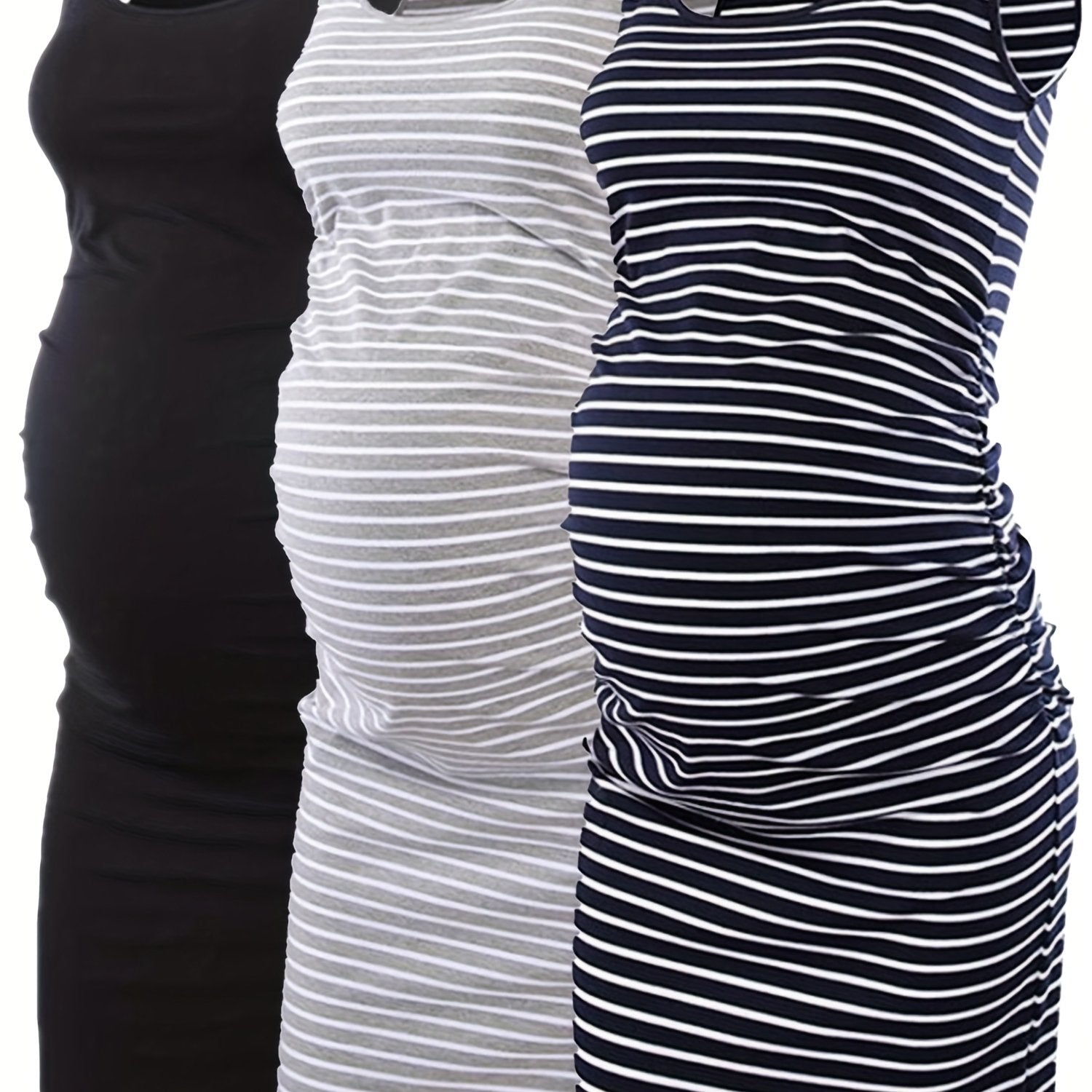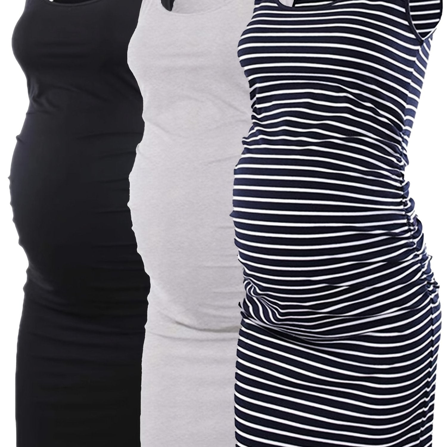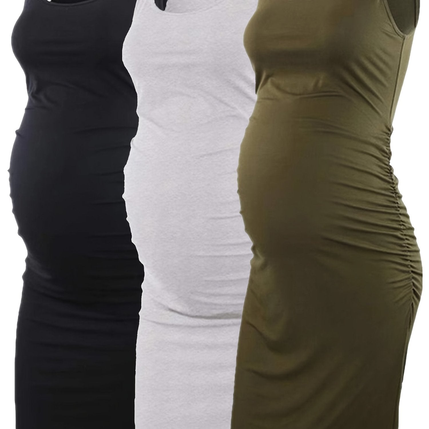 Set di 3 abiti da maternità senza maniche per donne, colore solido, scollo rotondo, stile bodycon, abito a canotta.