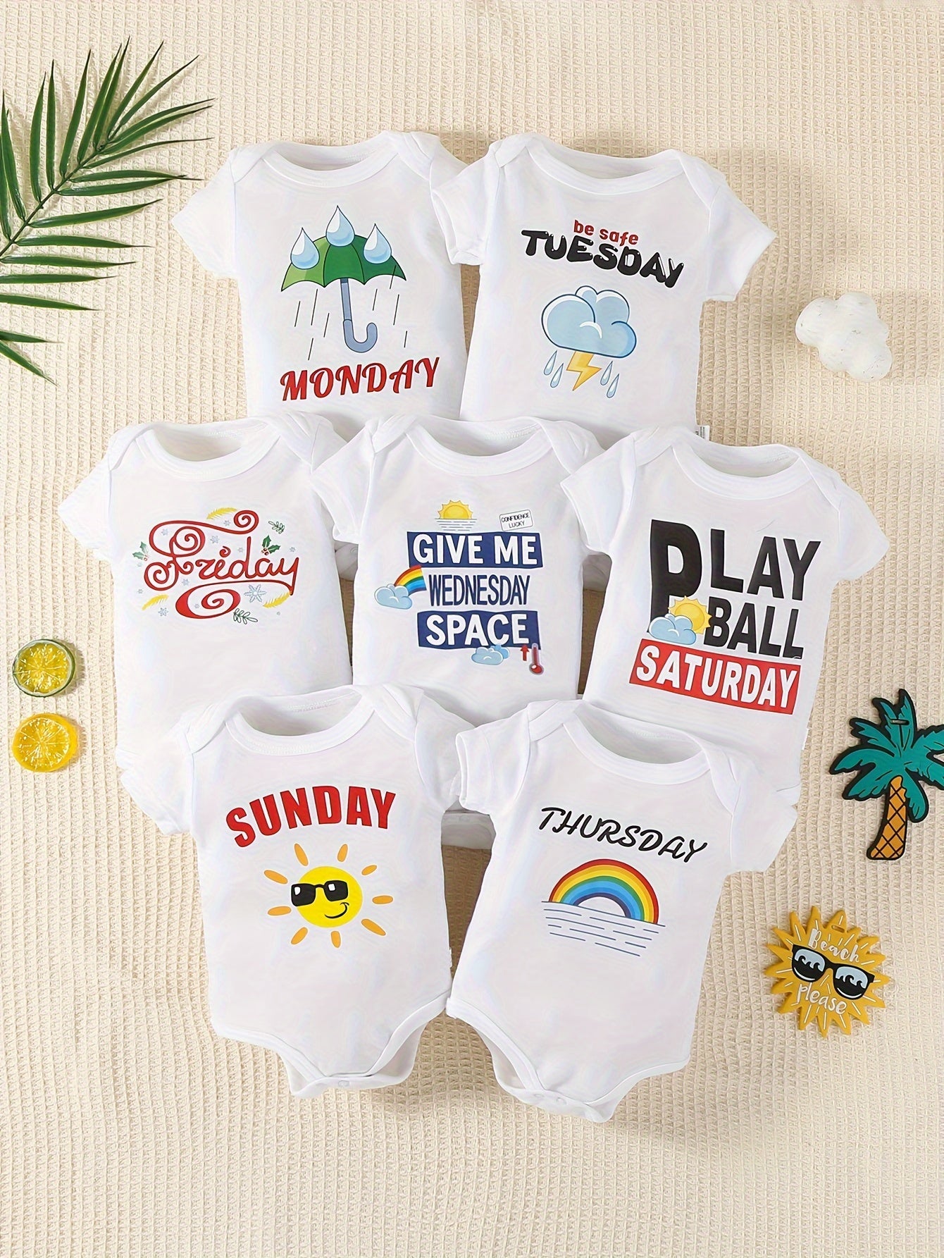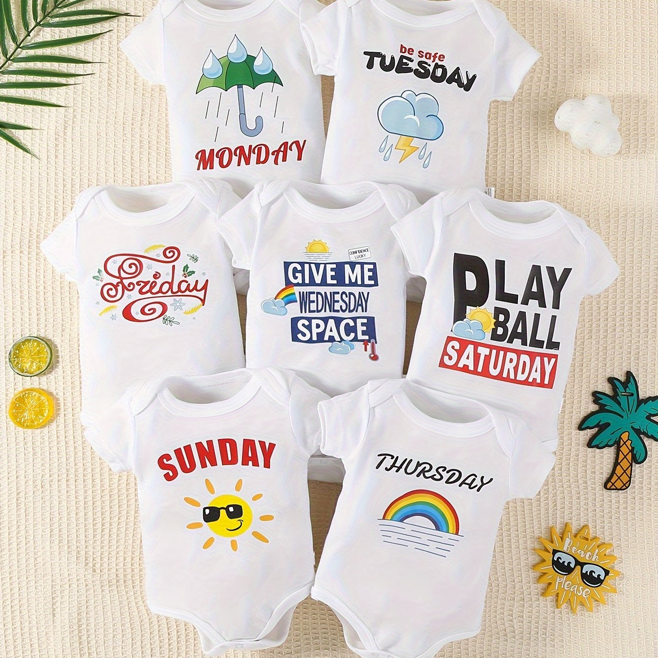 Set di 7 Tutine in Cotone con Stampa Cartoon Carine per Neonati e Bambini Piccoli - Manica Corta, Lavabili in Lavatrice - Perfette per Primavera/Estate/Autunno, Ideali per l'Esterno