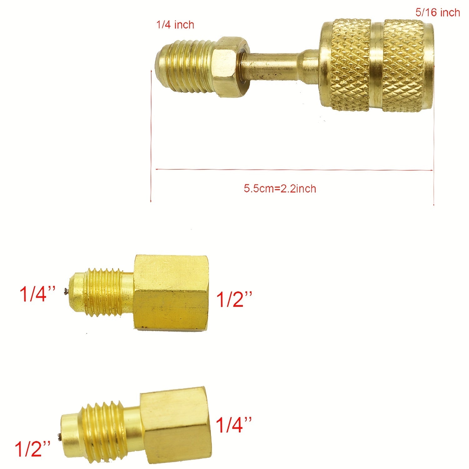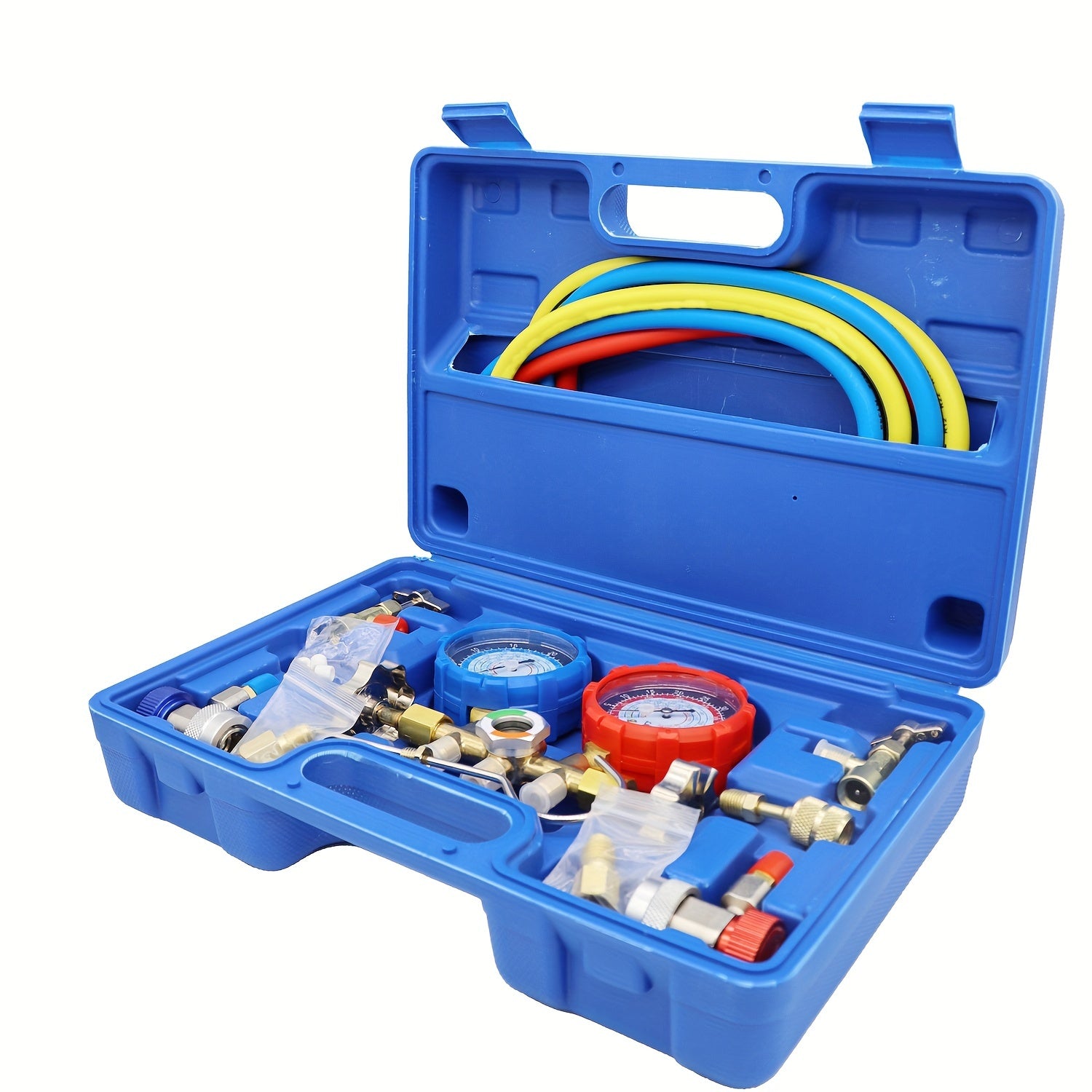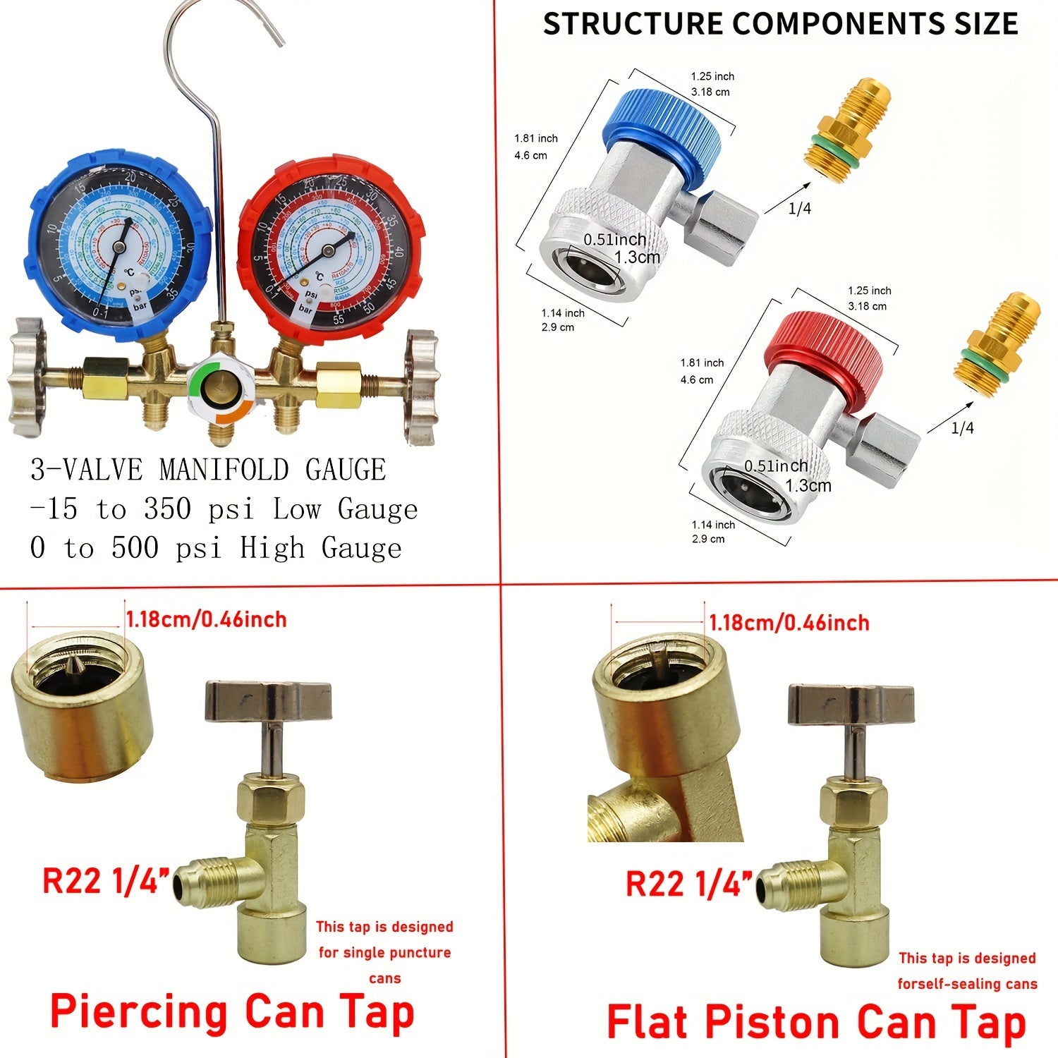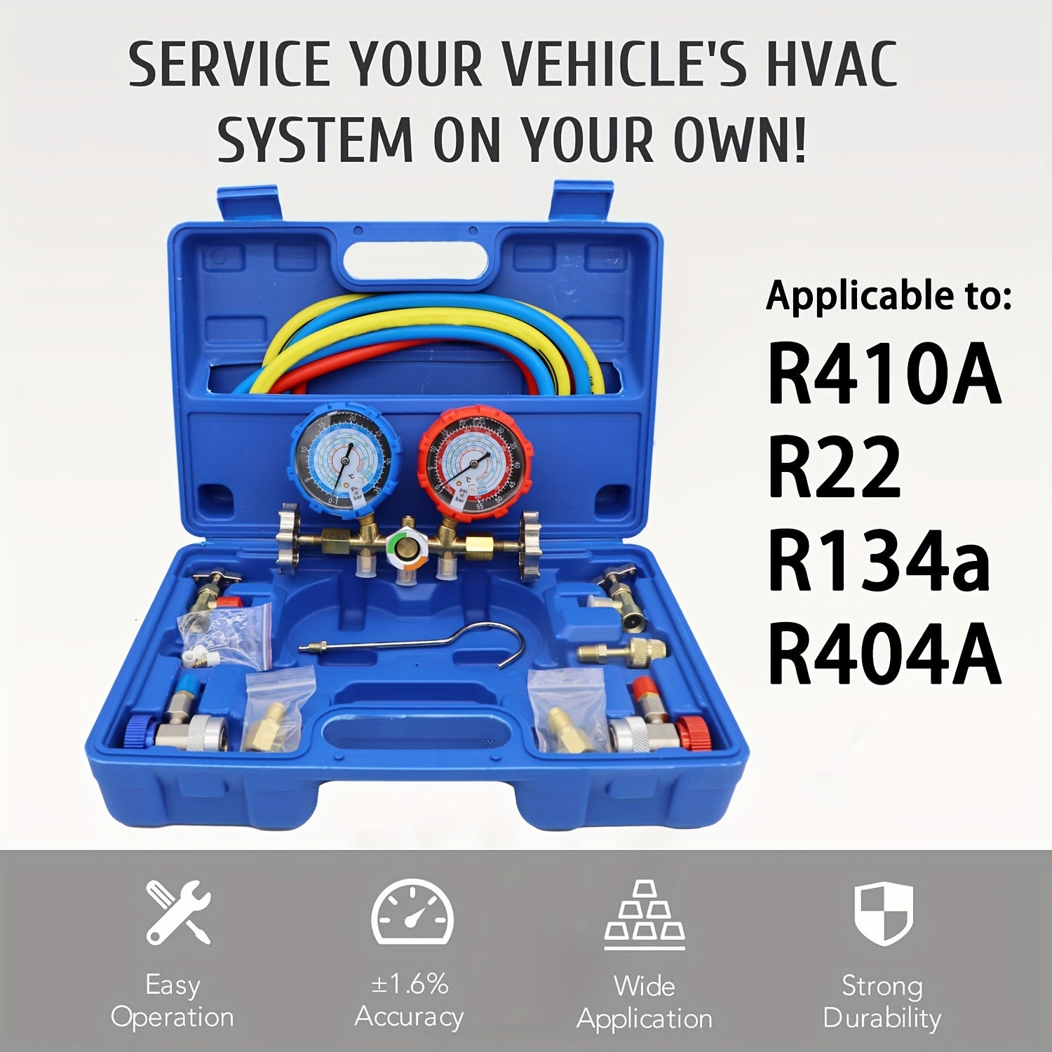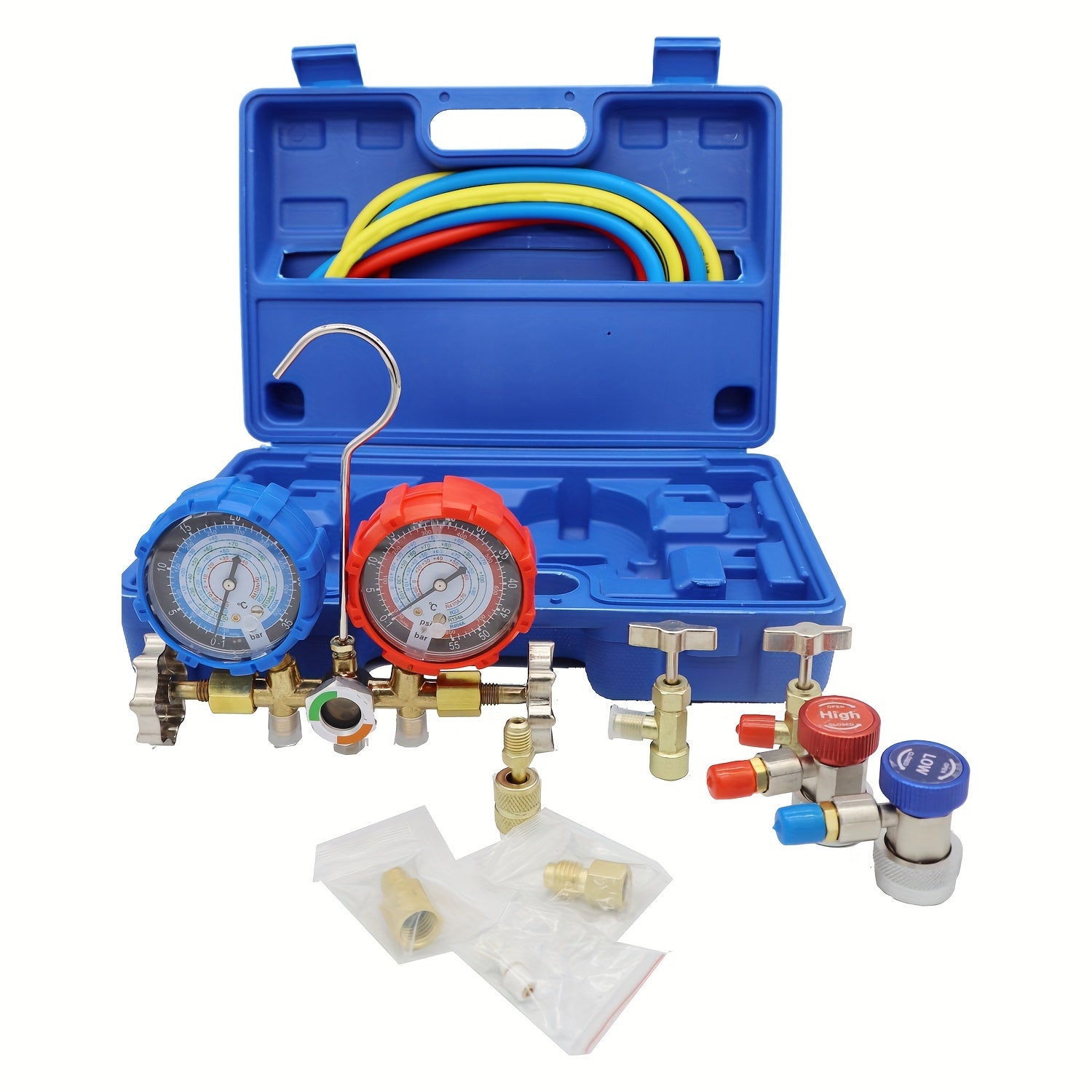 Set di Manometri per Collettore AC R410A R22 R134a R404A, Kit di Ricarica Refrigerante a 3 Vie con Tubo da 1.2m, Accoppiatore e Connettore