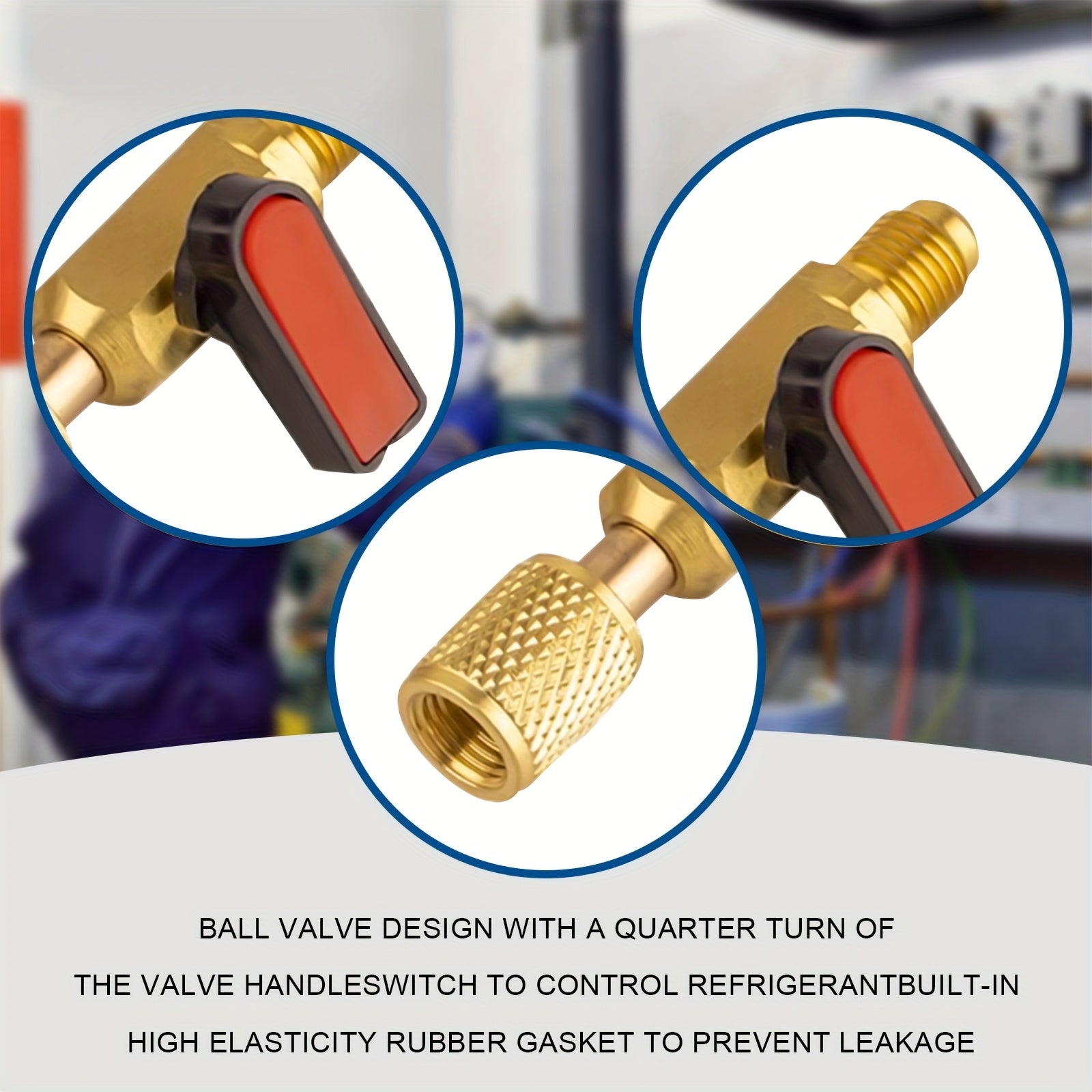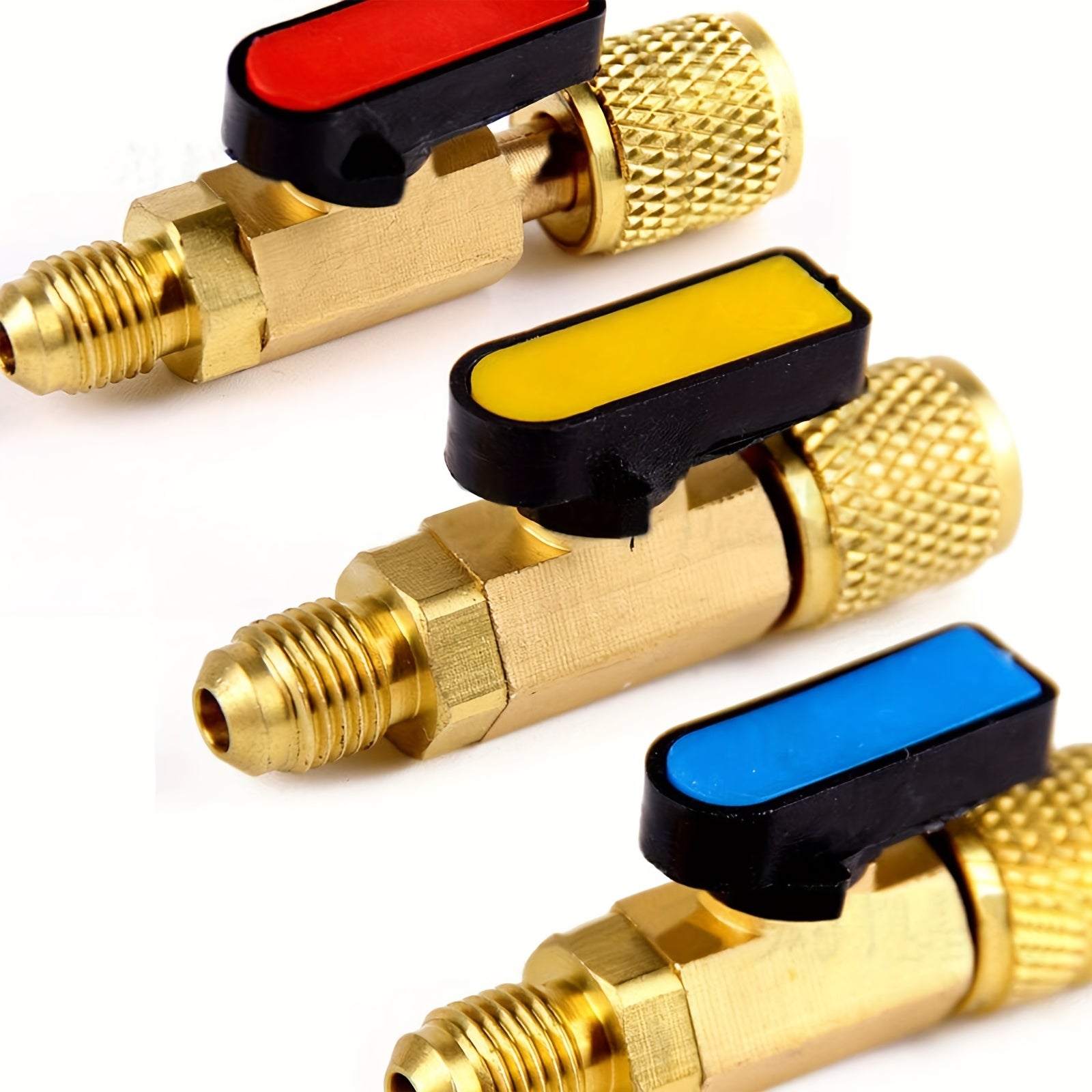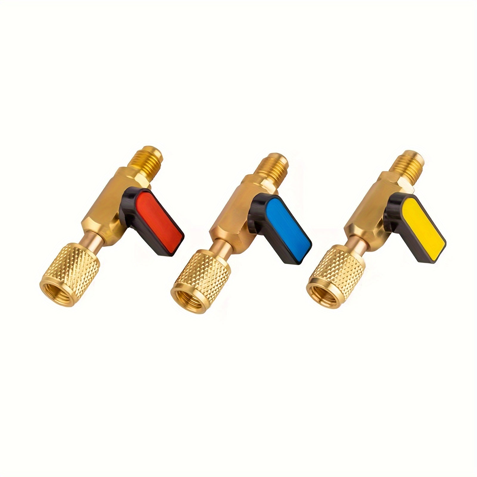 Set di Valvole a Sfera Dritte da 3 Pezzi con Adattatore Rotante 1/4" SAE, Kit di Valvola di Ricarica del Refrigerante in Ottone R22 per Sistema HVAC, Strumenti di Valvola in Rame Antigoccia