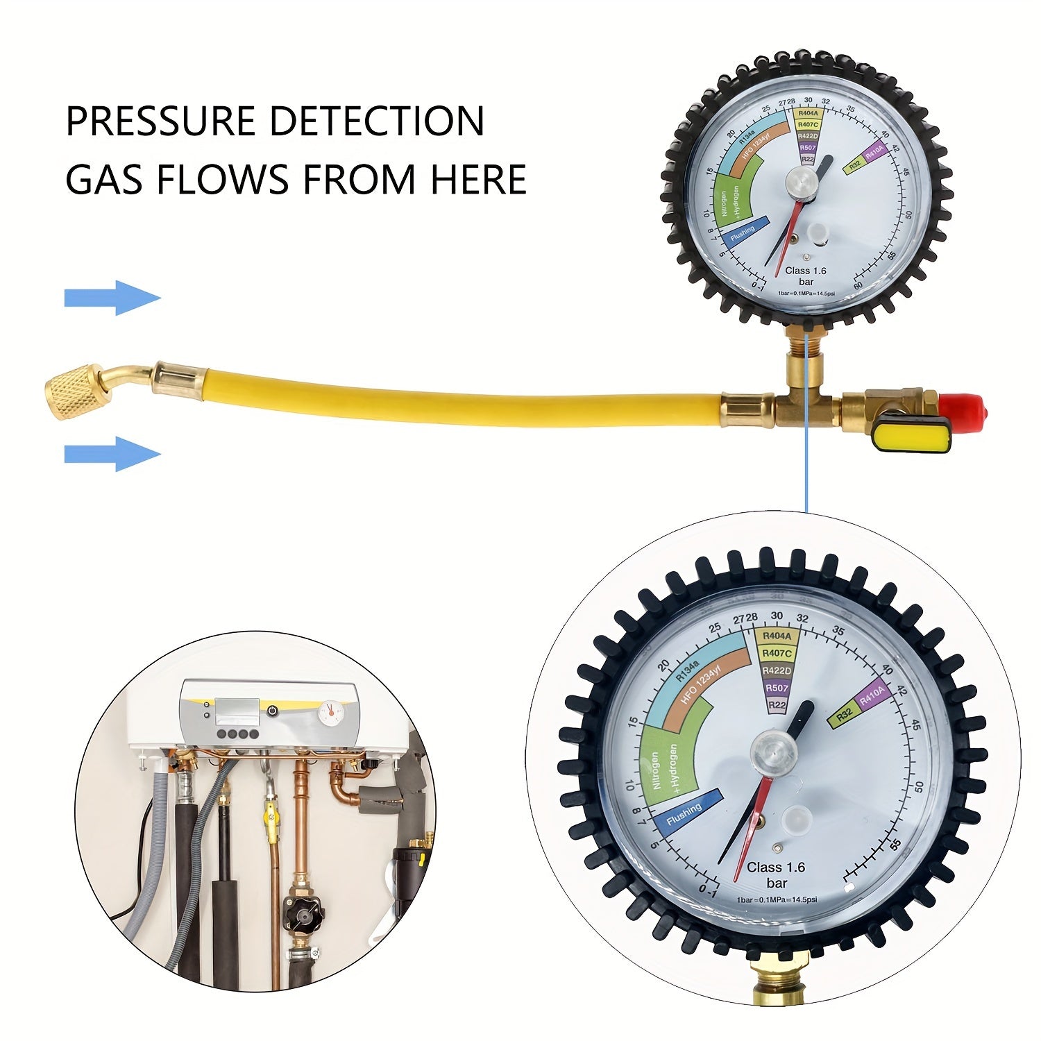 Strumento di misurazione della pressione a nitrato per sistemi di condizionamento dell'aria, frigoriferi, sistemi HVAC, R134a, R22, R407C, R410A, R404A, R507, R32