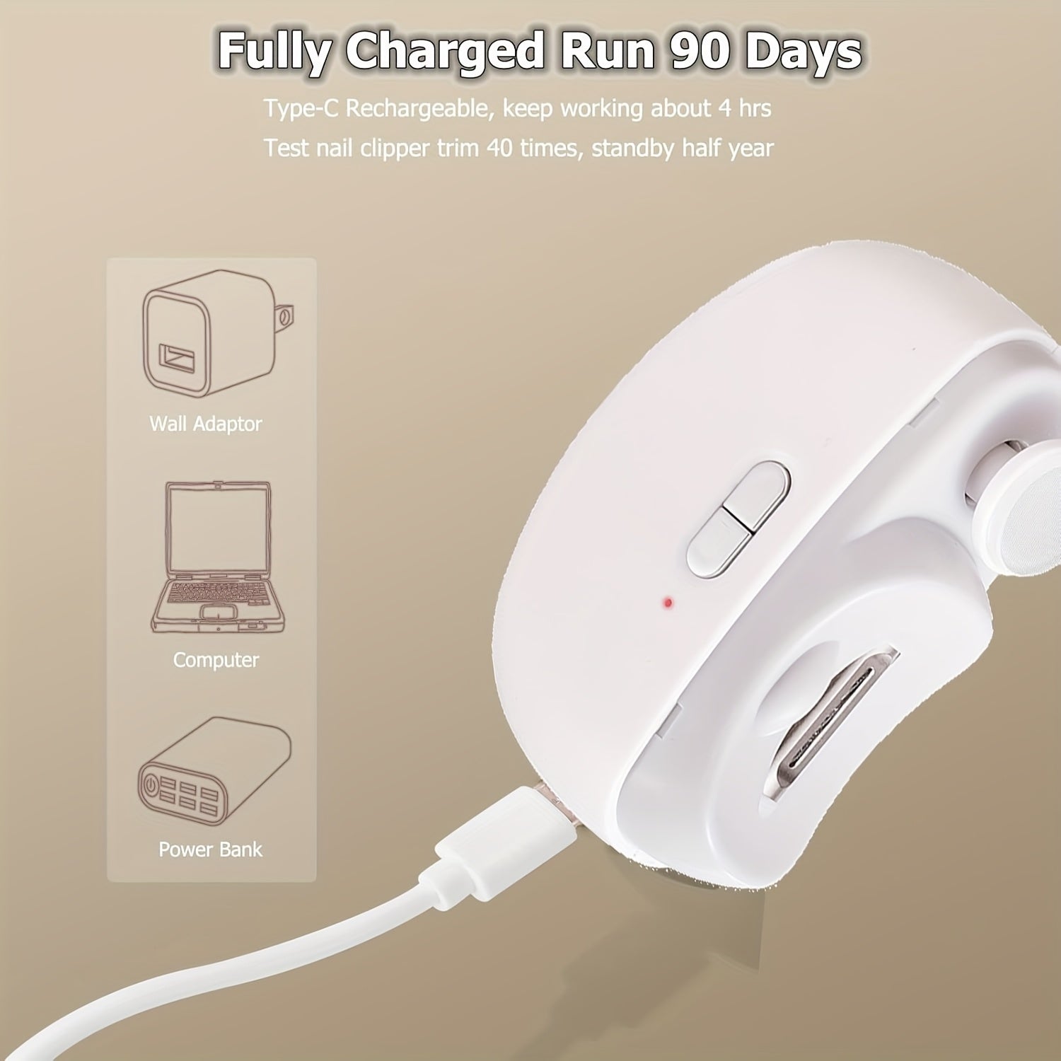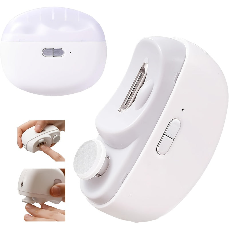 Tagliunghie Elettrico Ricaricabile USB con Levigatrice e Lucidatore Integrato - Strumento di Manicure Portatile 2 in 1 per Casa e Viaggio, Dispositivo Cura delle Unghie Doppio Uso per Taglio e Levigatura, Bianco, Gadget per la Cura Personale | Design Eleg