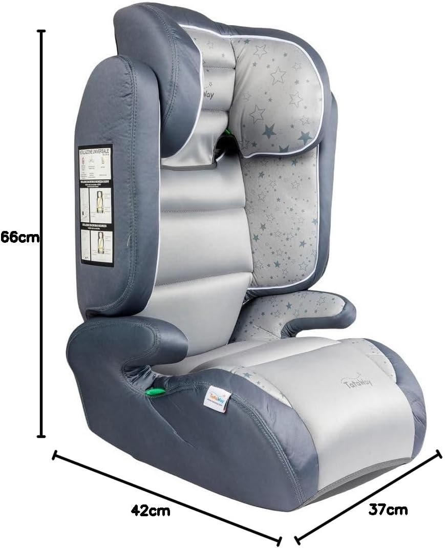 Tataway Seggiolino auto per la sicurezza dei bambini con altezza da 100 a 150 cm con grafiche di stelle su fondo grigio