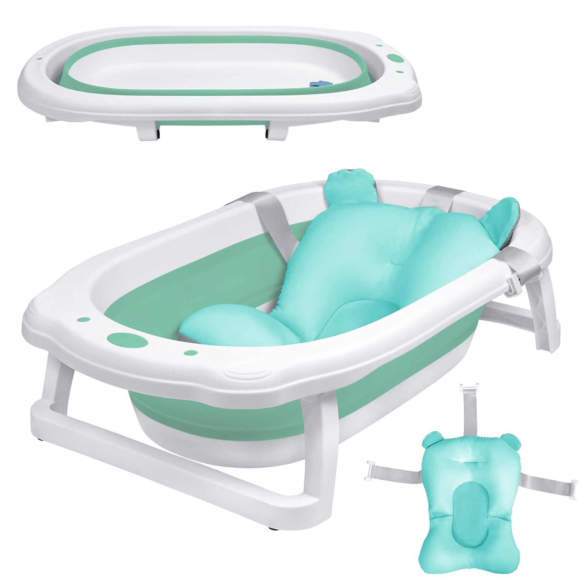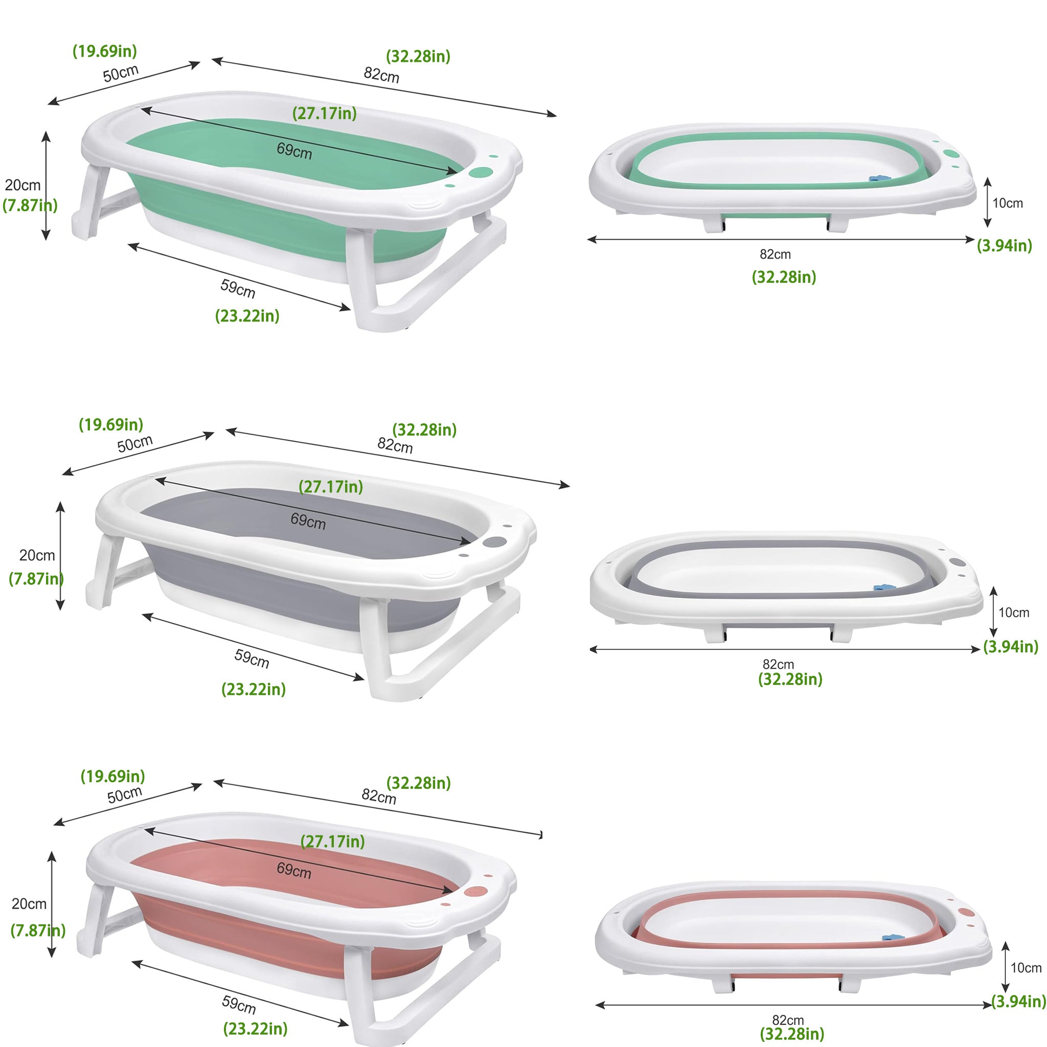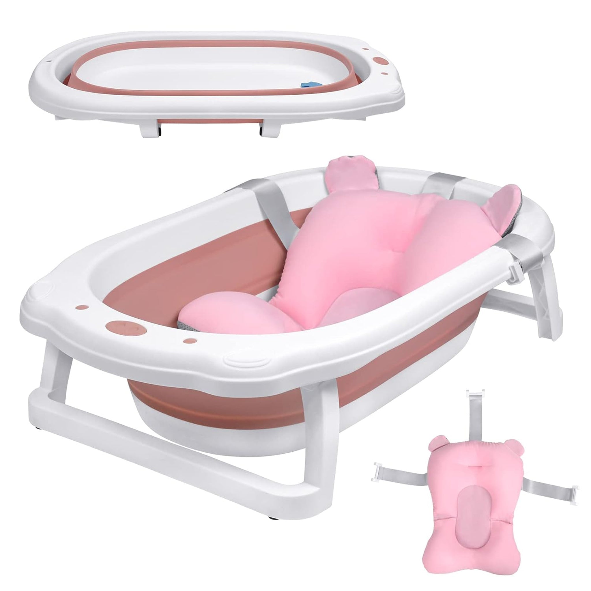 Vasca da Bagno Pieghevole per Neonati con Tappetino Rimovibile - 32.3" (82cm) Vasca Portatile, Design Ergonomico in PP & TPE per Neonati e Bambini Piccoli, Salvaspazio Rosa/Verde/Carbonio, Soluzione di Bagno per Neonati, Sicura per i Più Piccoli, Doccia E