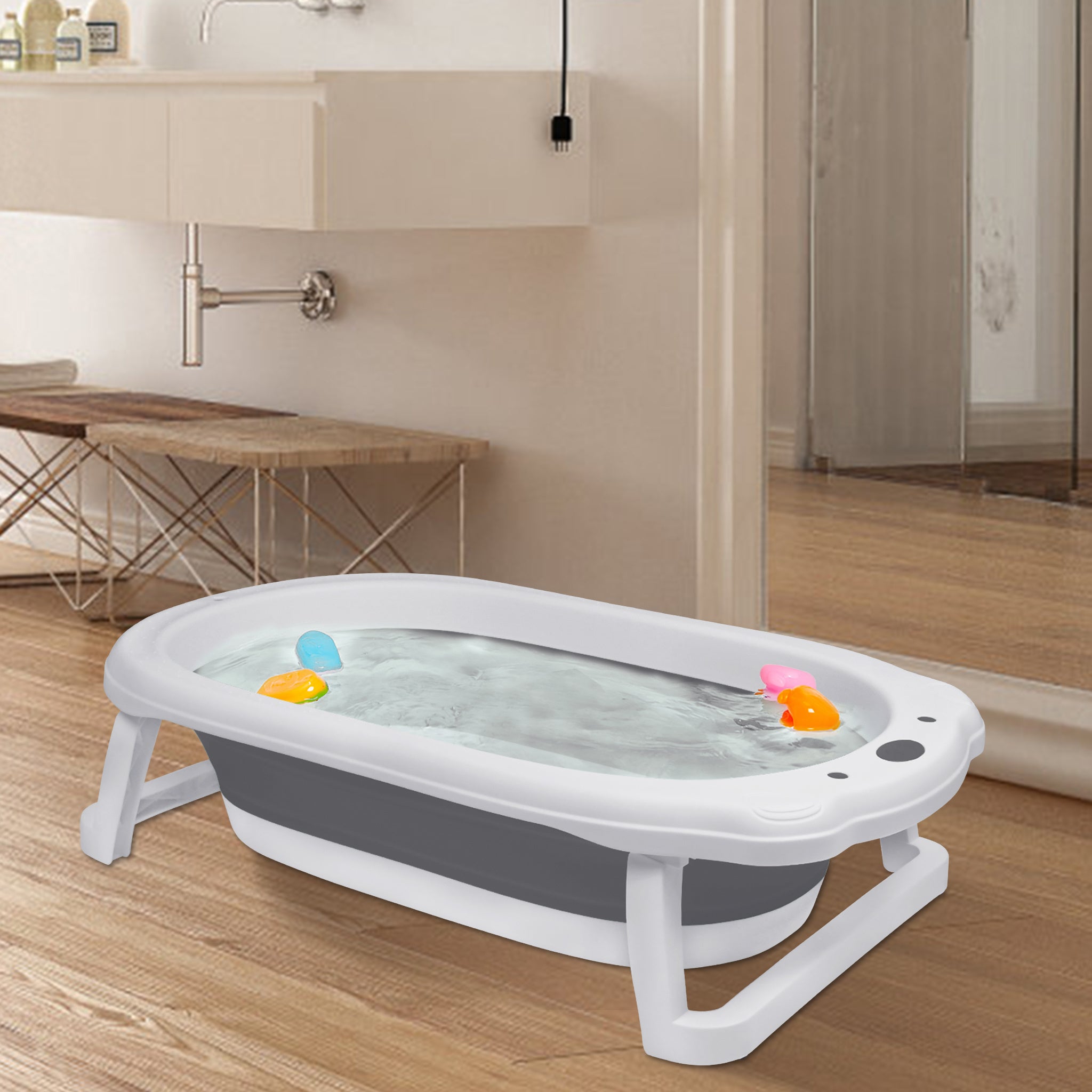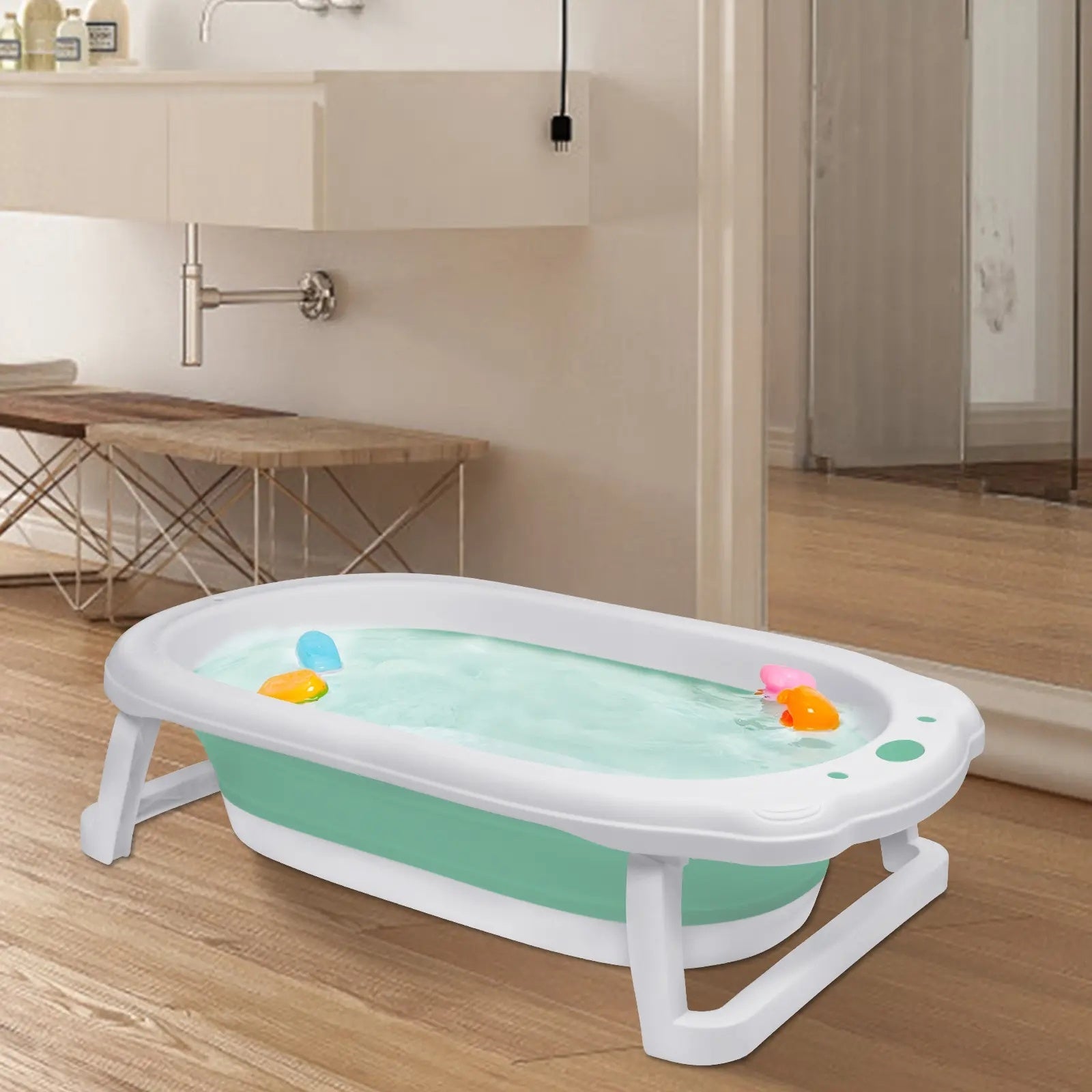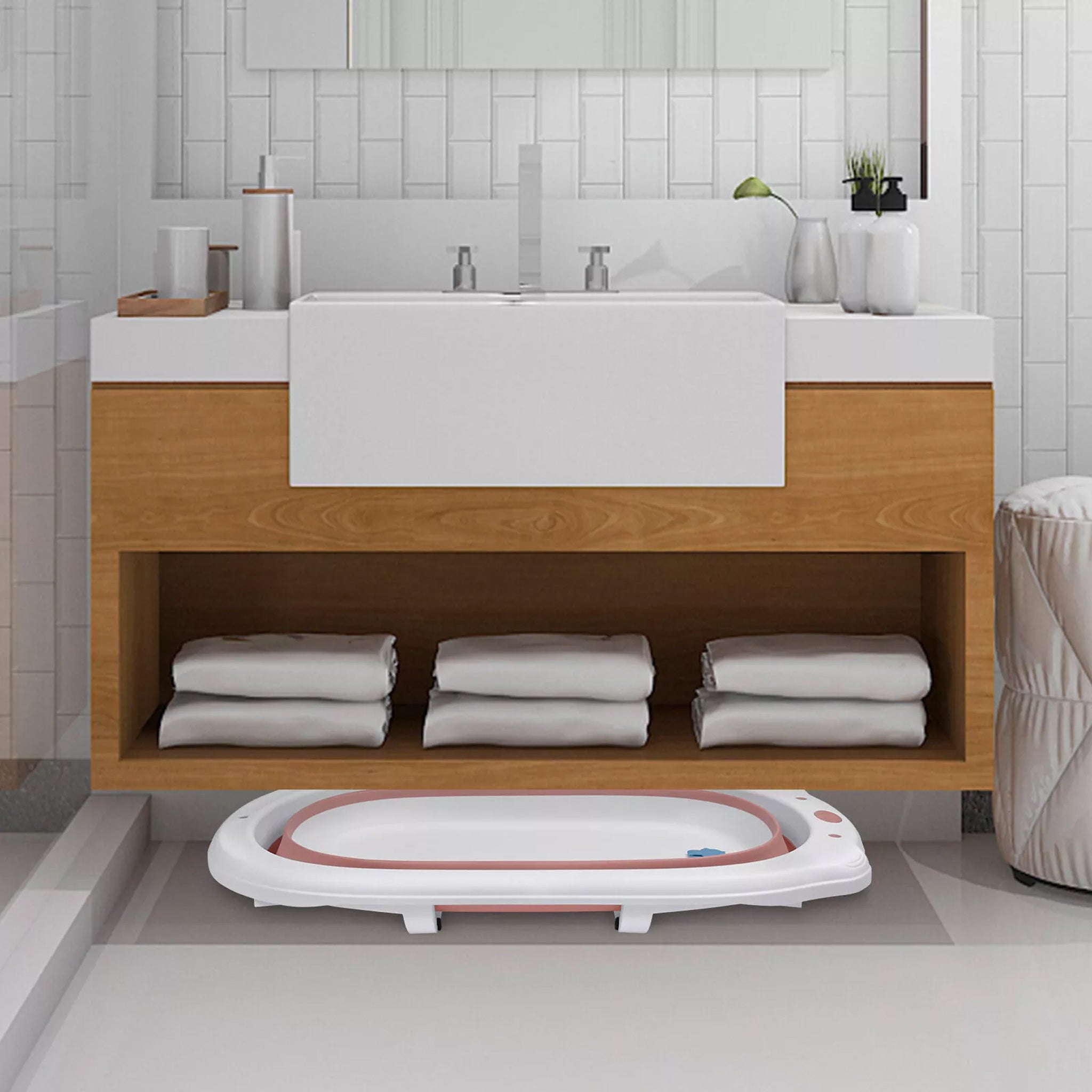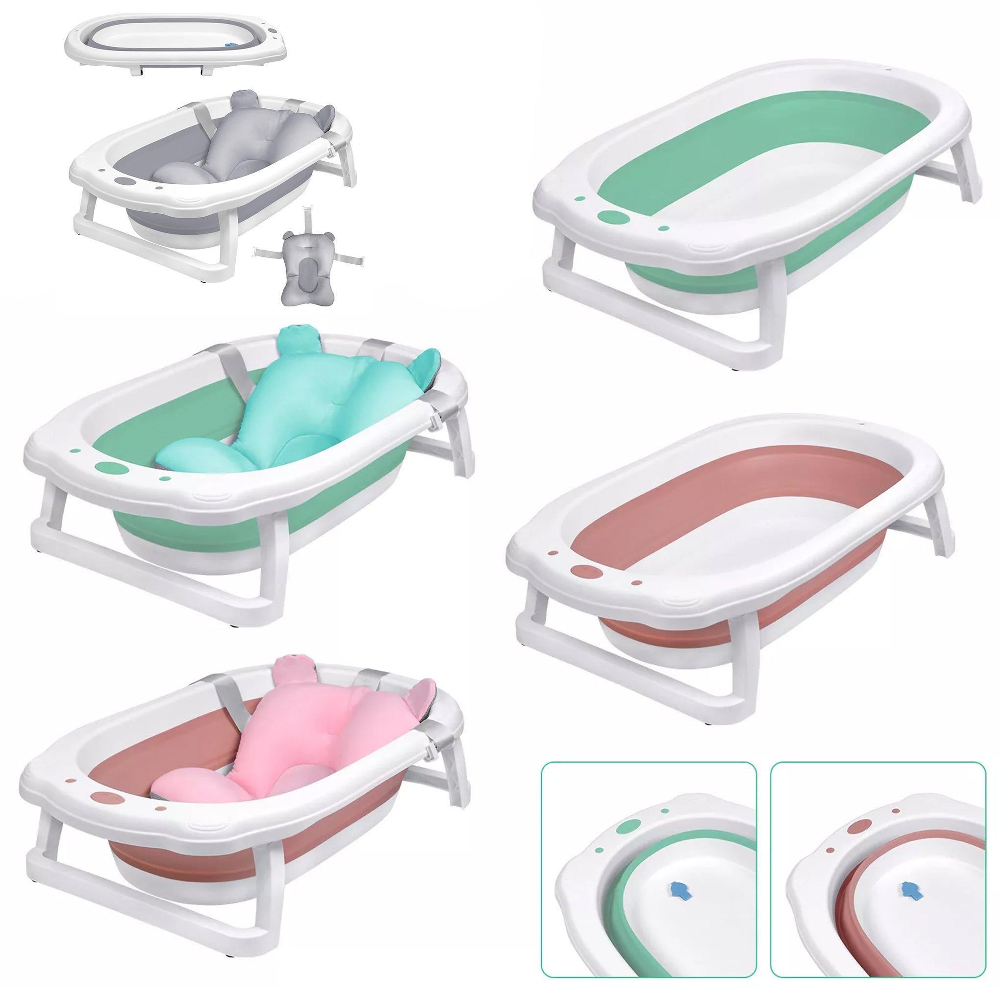 Vasca da Bagno Pieghevole per Neonati con Tappetino Rimovibile - 32.3" (82cm) Vasca Portatile, Design Ergonomico in PP & TPE per Neonati e Bambini Piccoli, Salvaspazio Rosa/Verde/Carbonio, Soluzione di Bagno per Neonati, Sicura per i Più Piccoli, Doccia E