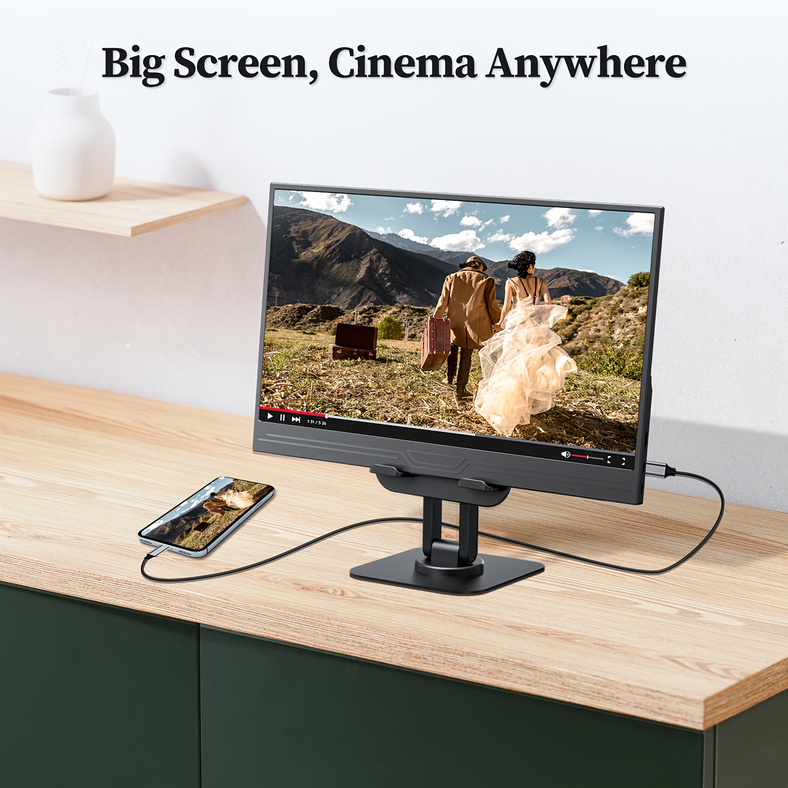 Veout Monitor Portatile 13.3" per Laptop, pz e Telefono - Display Esterno FHD IPS 1920x1080P 16:9 con 100% sRGB, Supporto in Alluminio Regolabile, USB-C/Mini HDTV, FreeSync, Finitura Opaca & Altezza Regolabile per Ufficio e Casa, Design Moderno, Schermo a