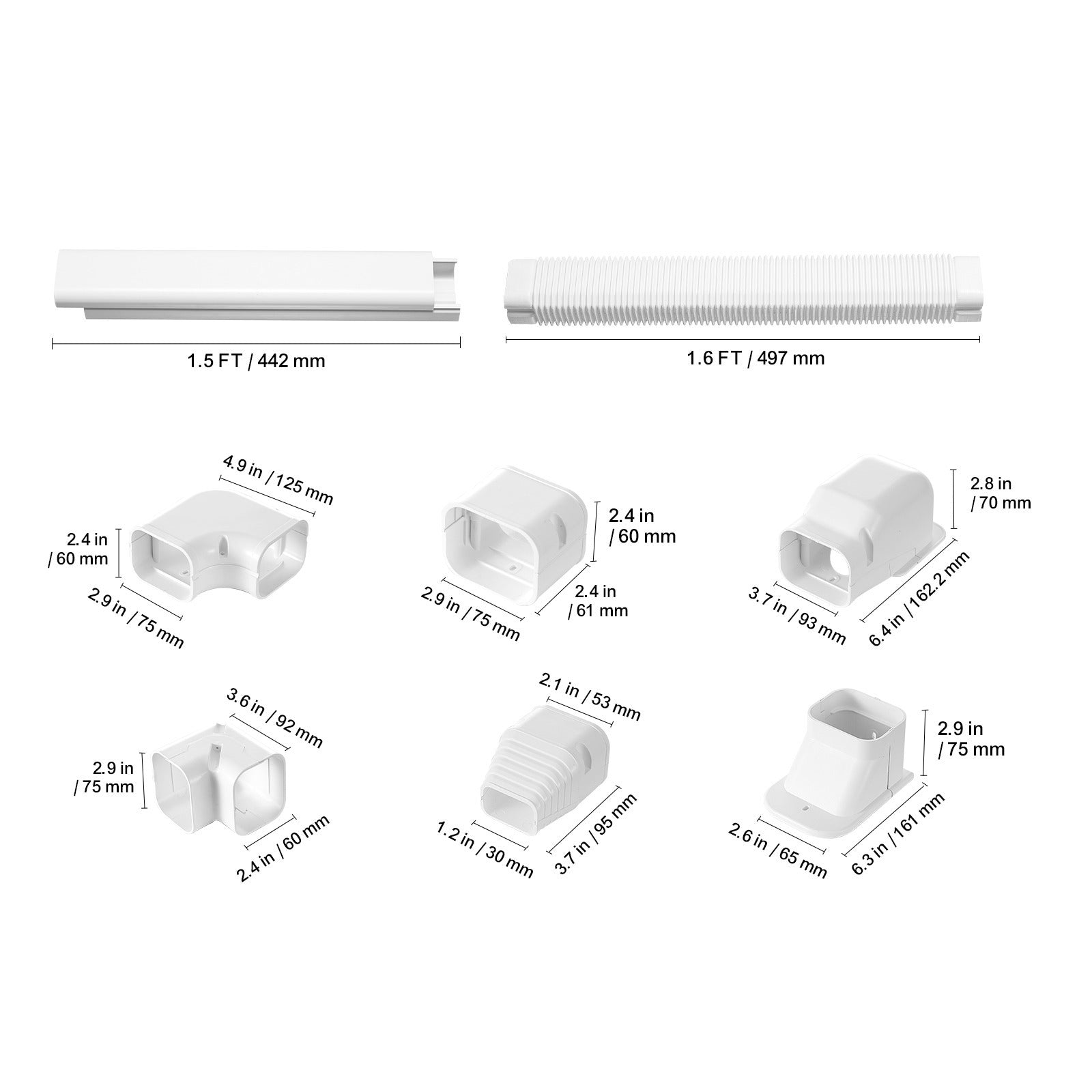 VEVOR Mini Split Line Set Cover 76.2mm W 5400mm L, copertura decorativa per tubi dell'aria condizionata in PVC con 10 condotti dritti e componenti completi Facile da installare, verniciabile per pompe di calore, bianco